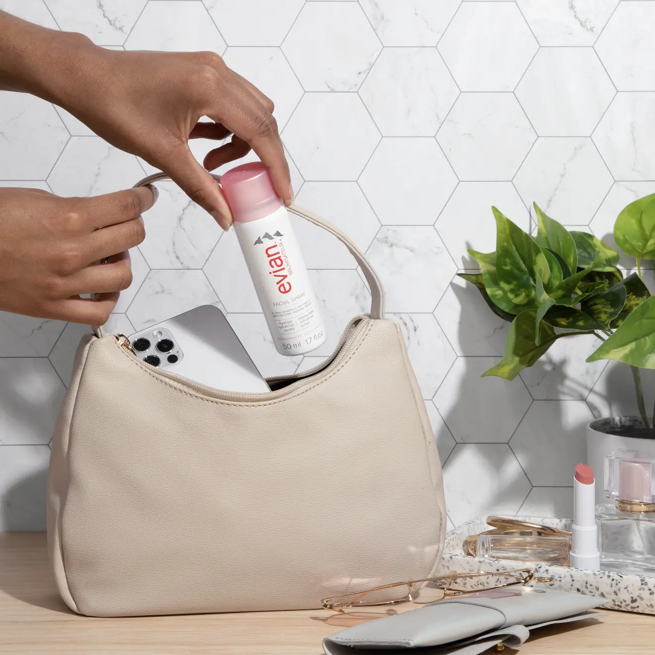 ·Spritz with the Evian Facial Spray travel mini throughout the day to revive your glow anytime, anywhere