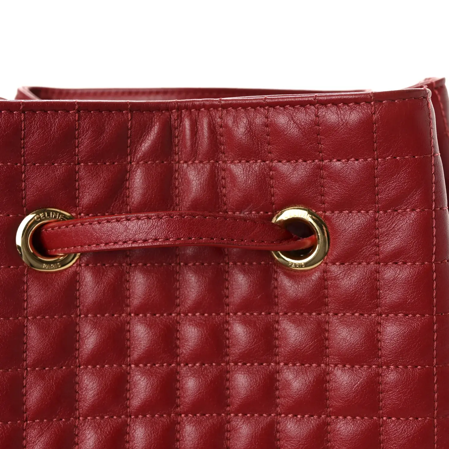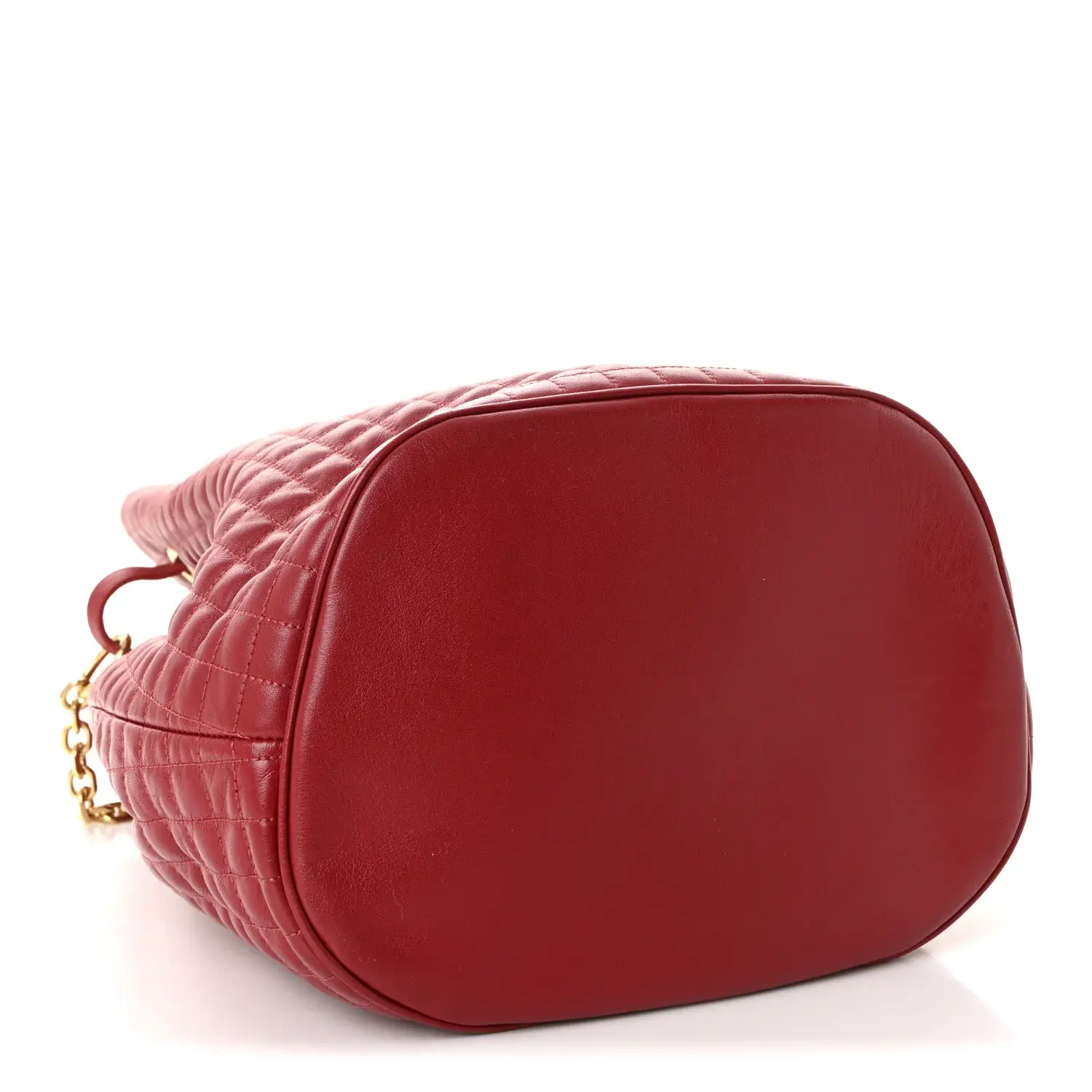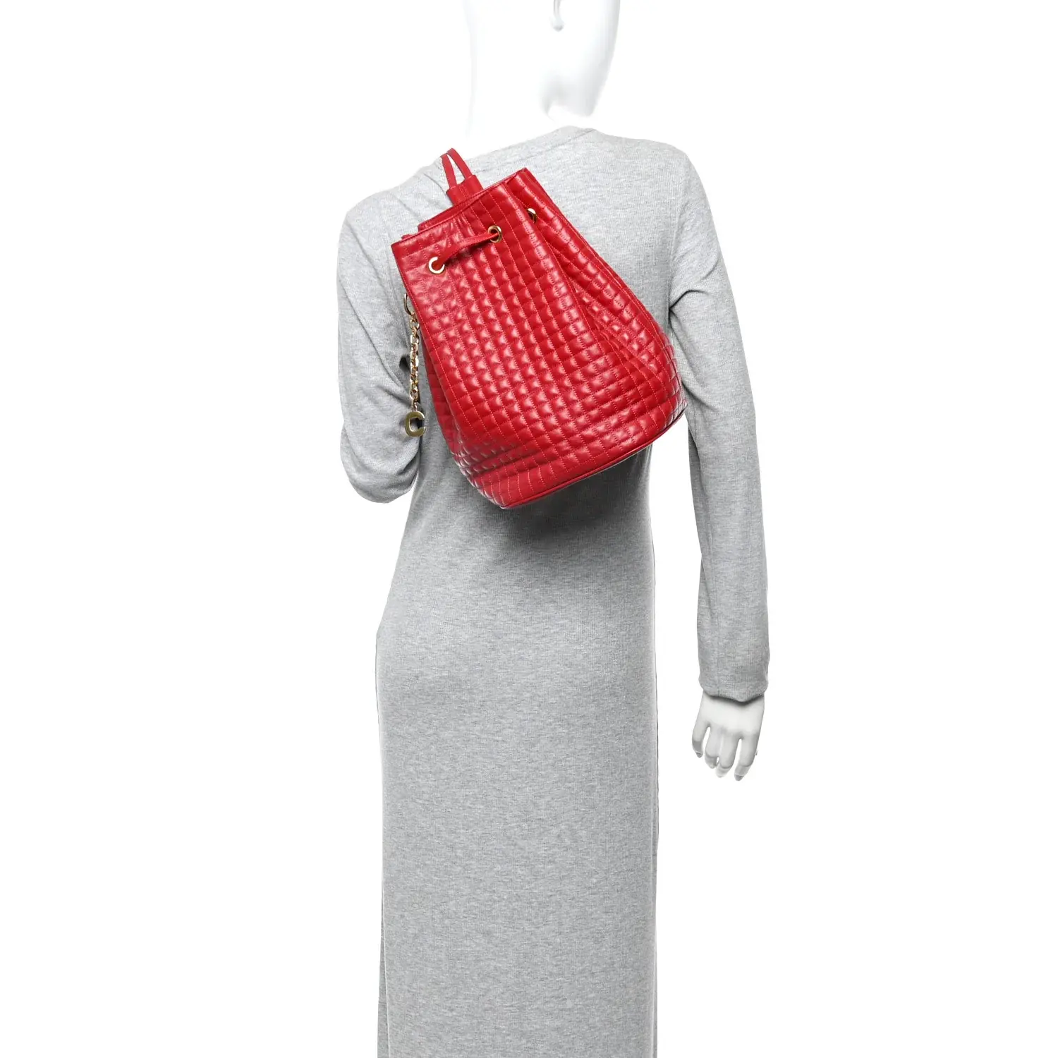 This is an authentic CELINE Calfskin Quilted Small C Backpack in Red. This elegant backpack is crafted of luxuriously quilted calfskin leather in red. The bag features polished gold hardware including a Celine C charm, and smooth leather backpack straps that flow into a cinch cord to close the top. The bag opens to a red fabric interior with a zipper pocket. This is a chic shoulder bag for your everyday essentials with the stylish innovation of Celine!