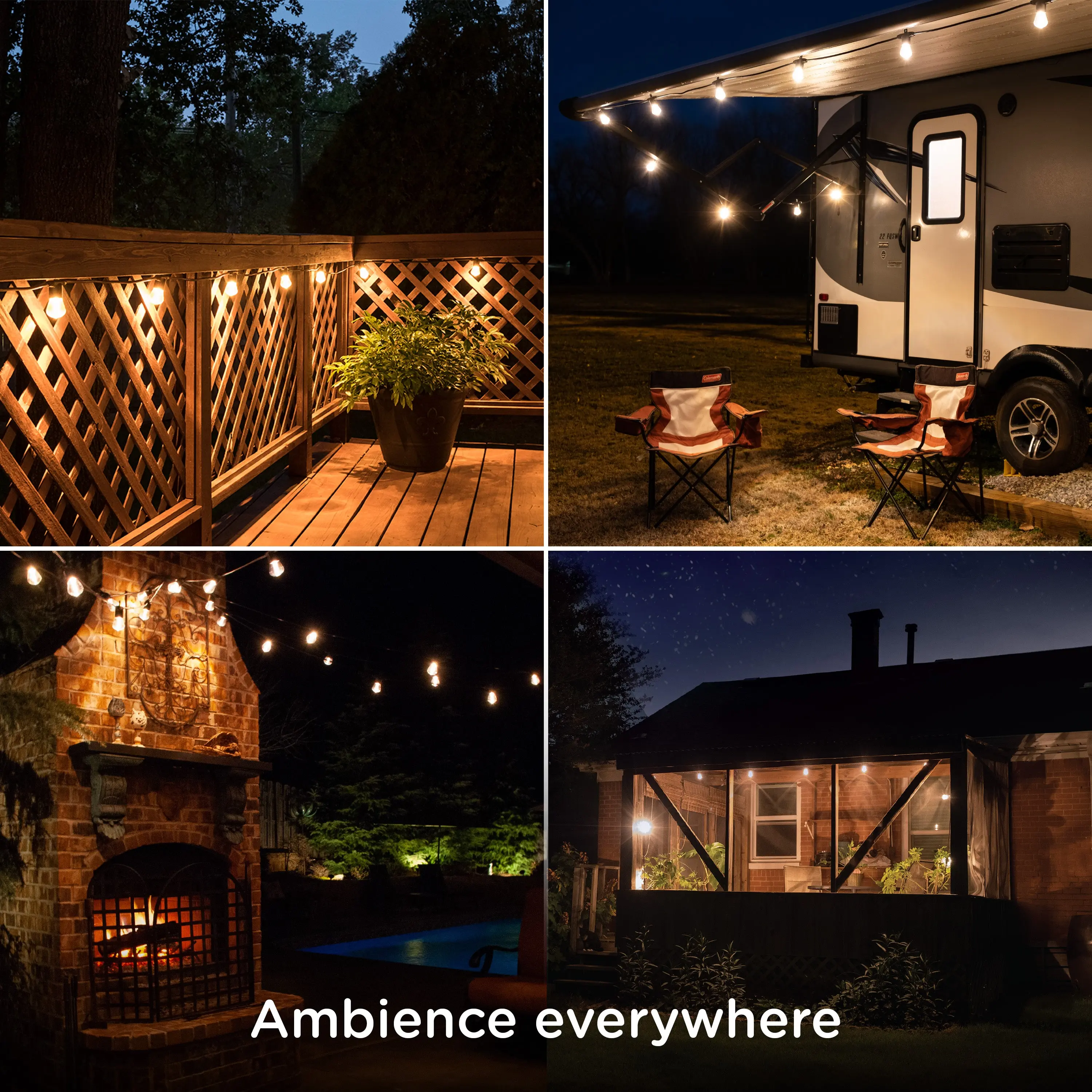 Make every occasion shine with the Lights by Night 24ft. Bistro Lights. These carefully crafted, Edison‑style string lights will keep your home looking festive and inviting all season long. These lights instantly enhance your backyard gatherings with the sophistication of old-world charm and the quality of premium lighting. Rated for permanent installation and year-round outdoor use, the bistro lights are the perfect addition to your deck or patio. They’re even great indoors! Integrate the bistro lights into your space for a modern, stylish look or create a warm canopy of light by stringing them above your bed. The lights are ideal for brightening dorm rooms, offices, kitchens and more.