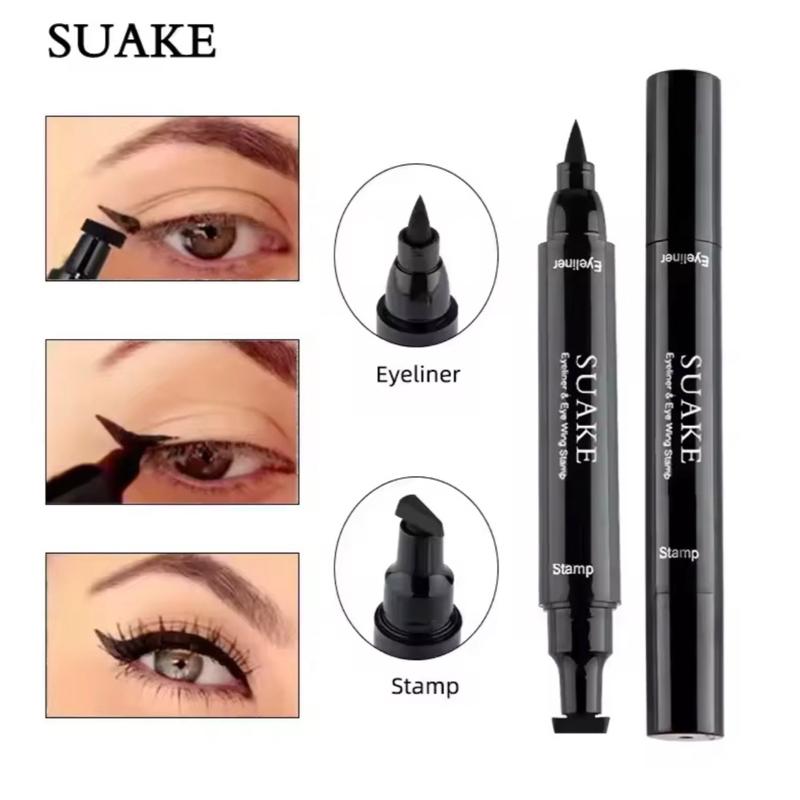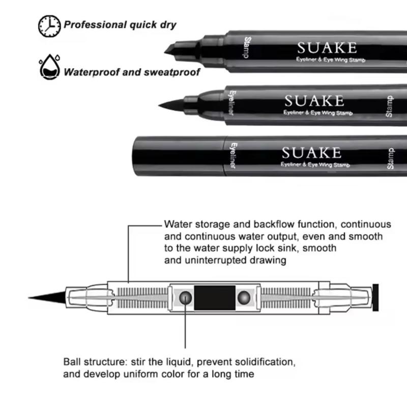 5. SUAKE 2-in-1 Winged Stamp Liquid Eyeliner Pencil Waterproof Fast-Drying Double-Ended Black Seal Eye Liner Pen for Women Cosmetics