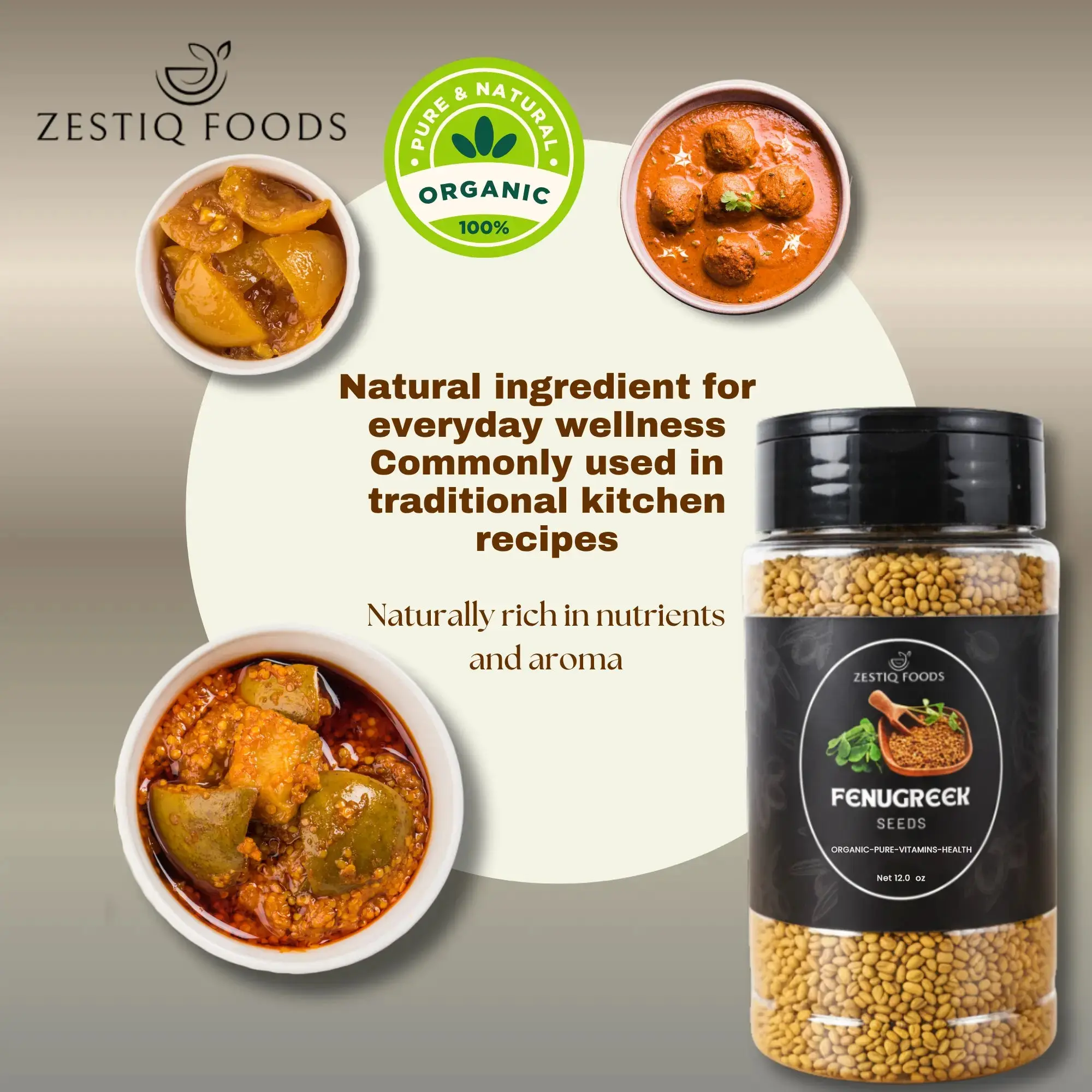 Free from additives, preservatives, and artificial ingredients, Zestiq Foods Organic Fenugreek Seeds bring clean, natural flavor straight from nature to your kitchen.