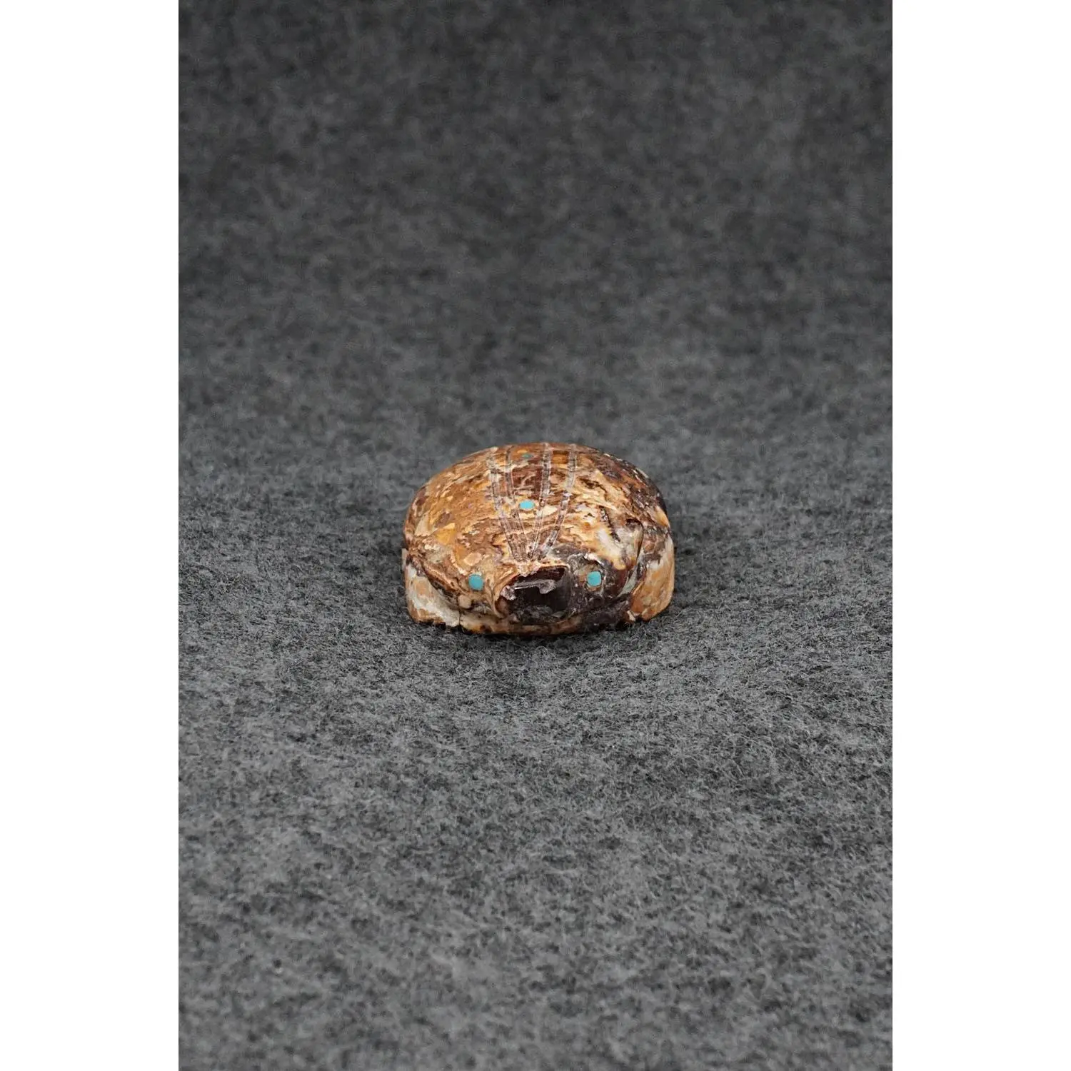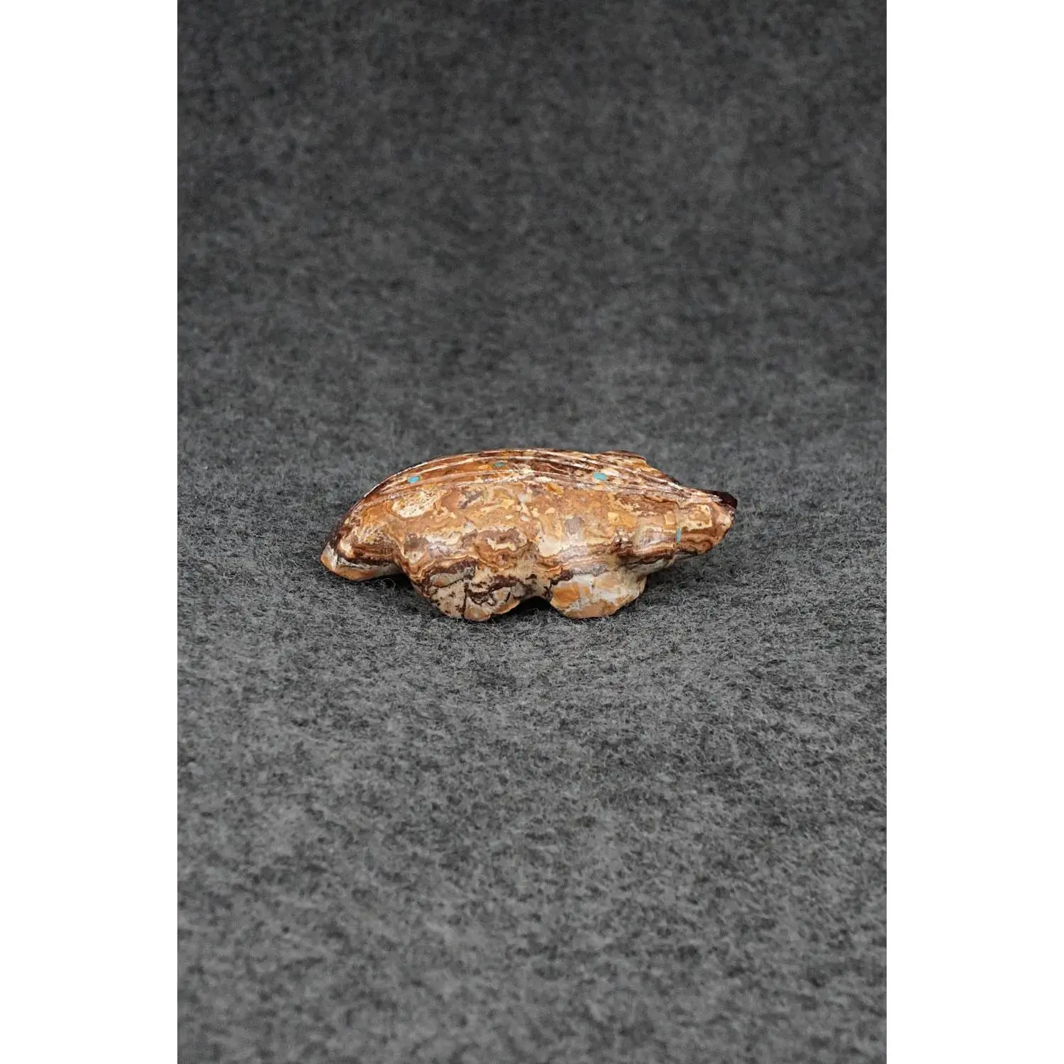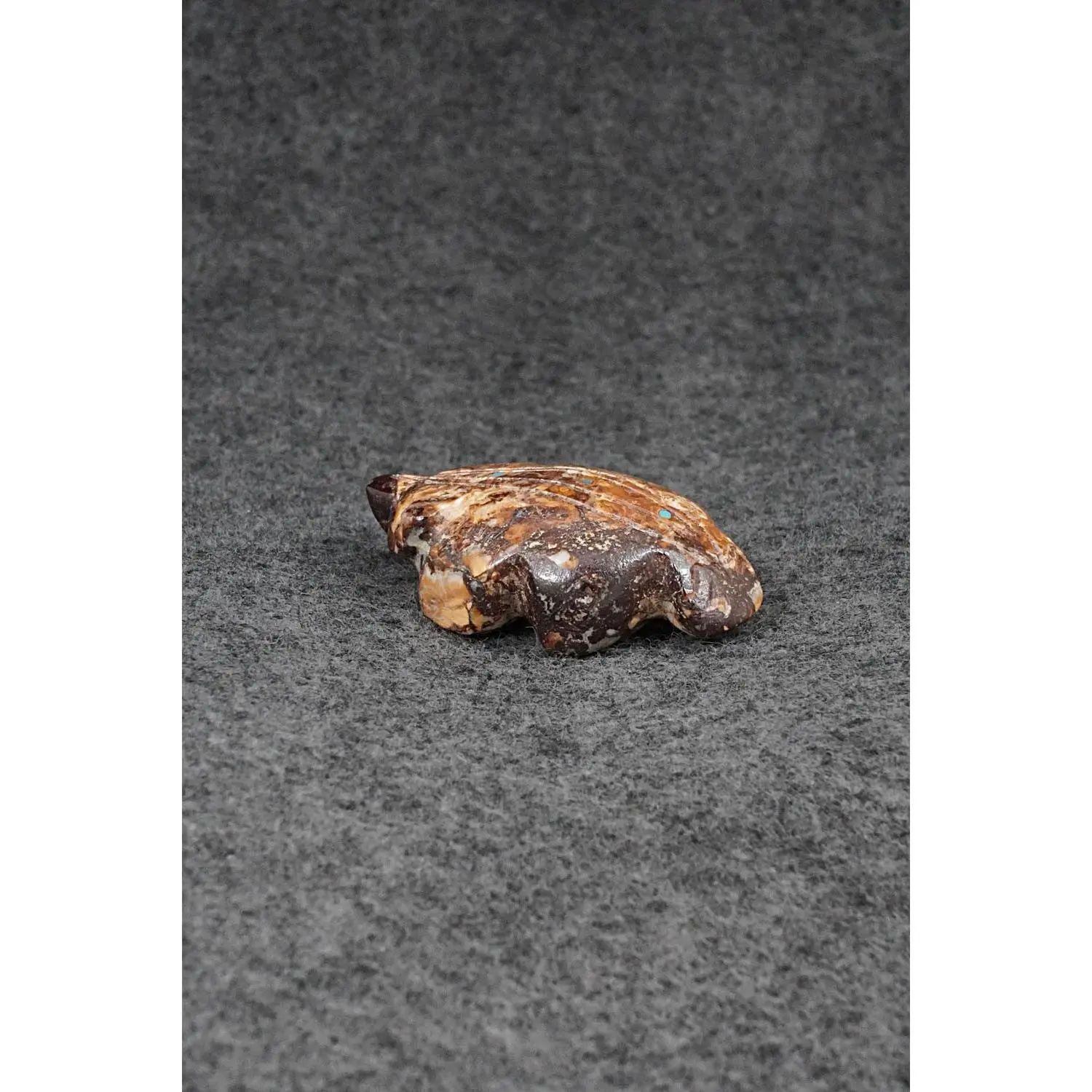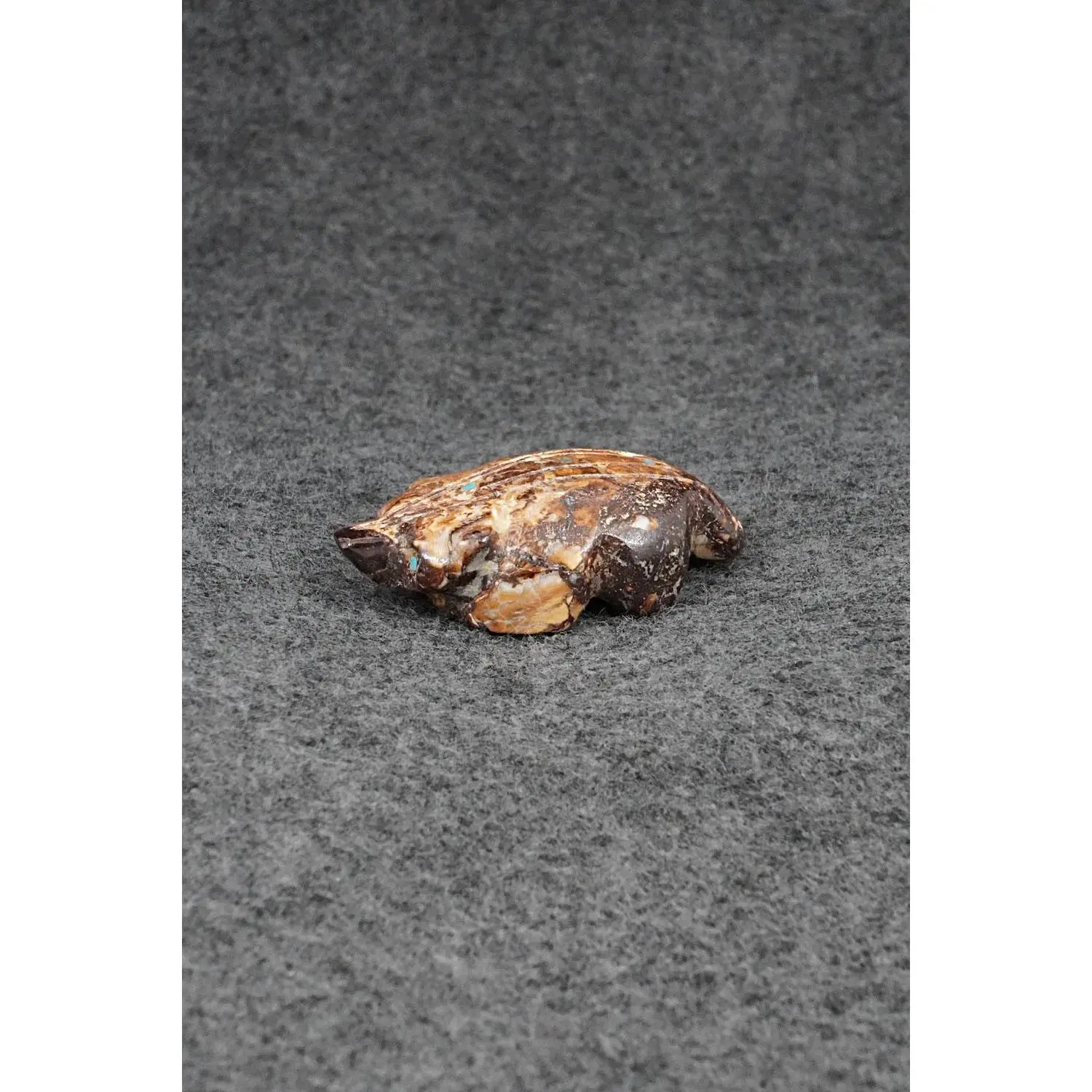 This badger Zuni fetish was carved by Brandon Phillips. The bottom is signed BP.