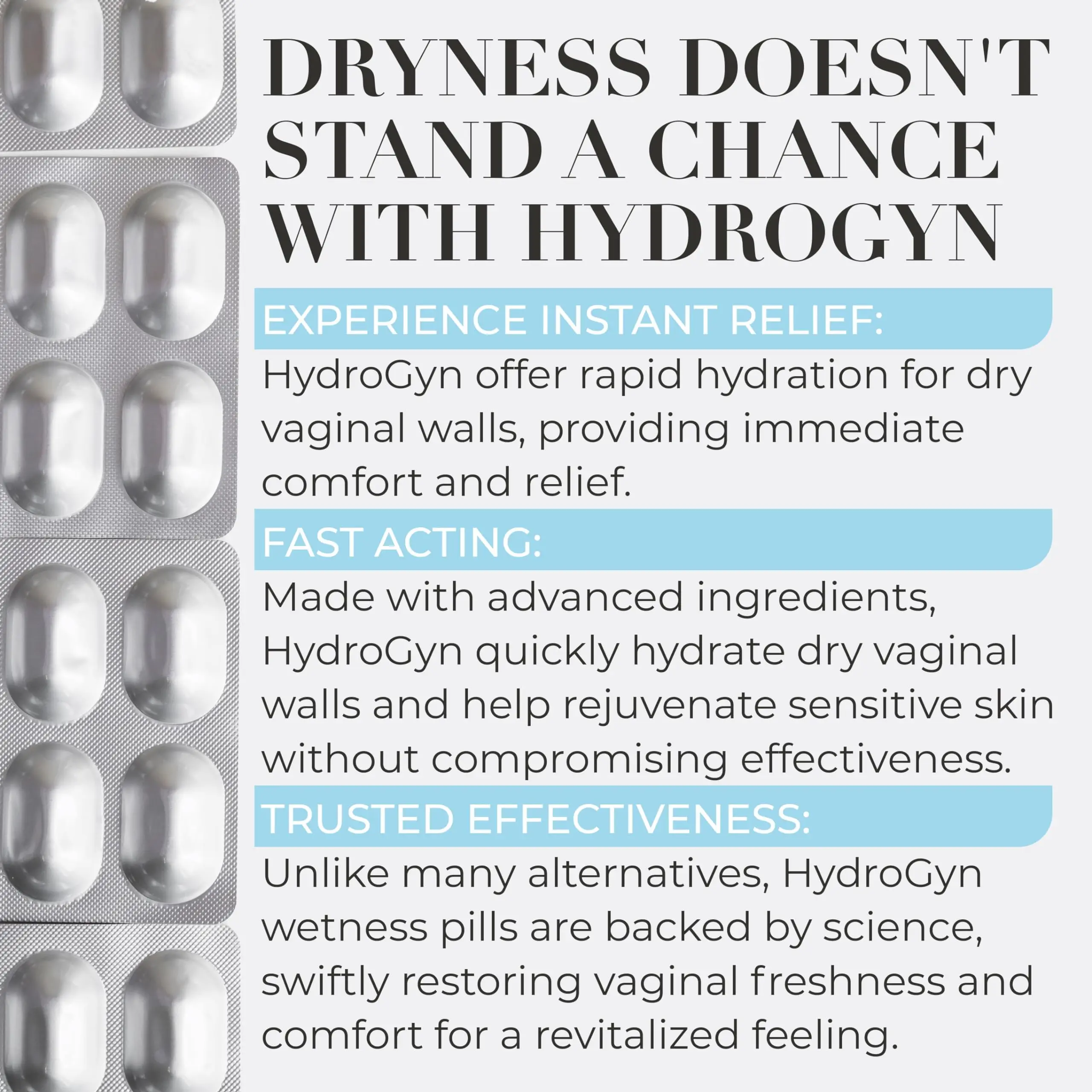 Hydro Gyn Vaginal Moisturizer Pills | Slippery Elm Intimate Care Capsules for Women to Support Healthy Moisture, pH Balance, Mood & Relaxation | Feminine Care Oral Capsules for Vaginal Dryness – 60 Capsules