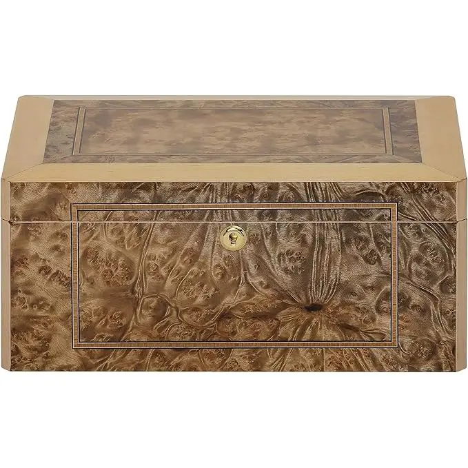 ·Desktop humidor holds between 40-75 cigars with handcrafted Rustic Burl Wood and Decorative Blue Inlay
