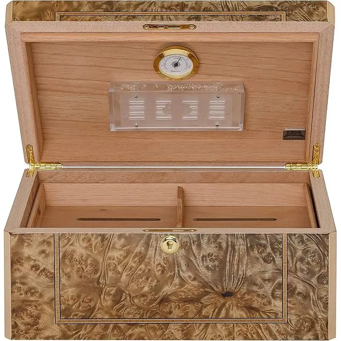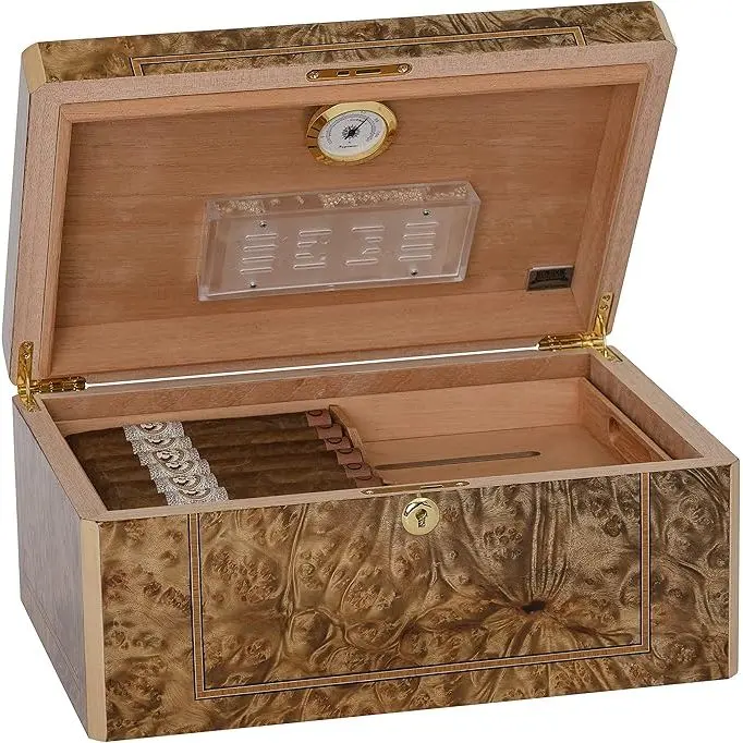 ·Includes Crystal humidifier, glass hygrometer with brass ring, lock and key. This premium cigar humidor will preserve and properly age your tobacco