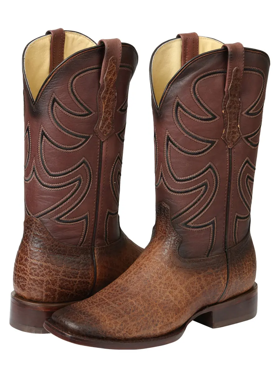 The Men's El General Rodeo Western Boots are handcrafted in Mexico with premium craftsmanship. Designed in a bold tobacco elephant print, these cowboy boots feature the classic Pro-Rodeo toe and durable leather sole, offering authentic Western style, comfort, and durability. Perfect for rodeos, ranch work, or everyday wear.