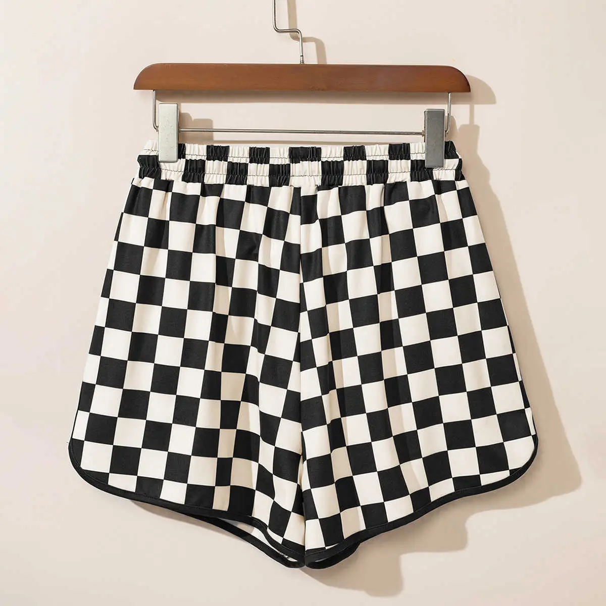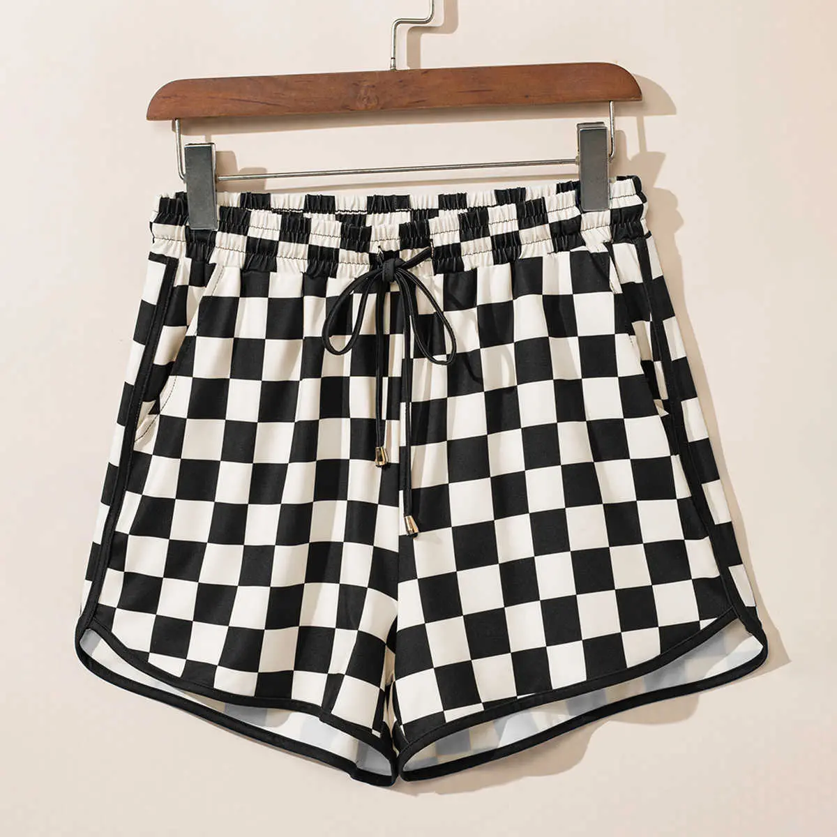Rose Checkered Drawstring Elastic Waist Casual Shorts