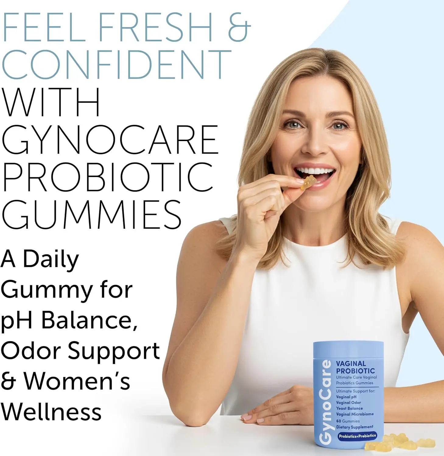 Take control of your feminine health naturally—GynoCare Vaginal Probiotics Gummies make it simple, tasty, and effective!