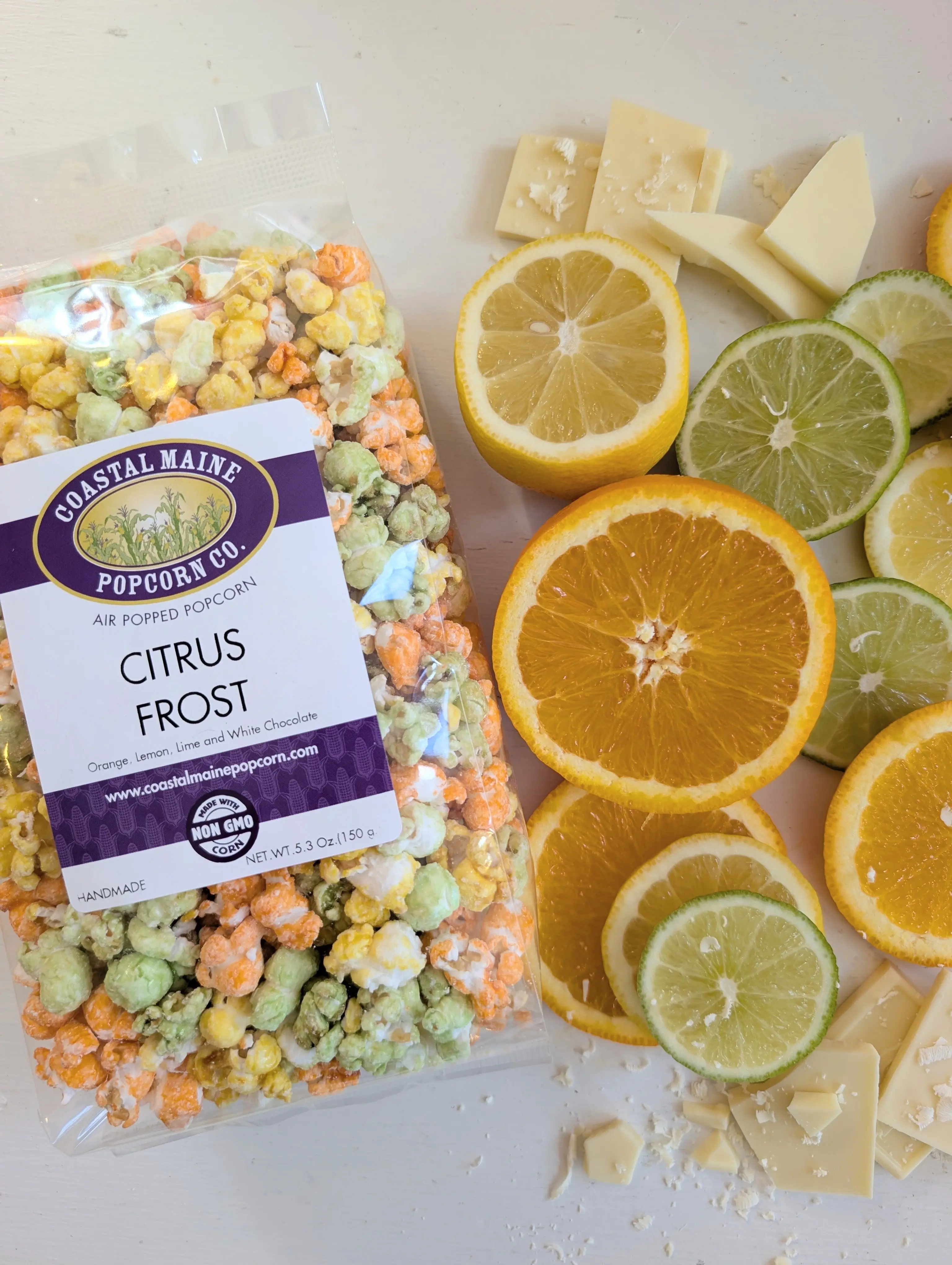 🍊🍋🍿 Bright, zesty, and refreshingly sweet - our Citrus Frost Popcorn is a brand-new flavor bursting with sunny citrus goodness! This colorful mix combines orange, lemon, and lime–flavored popcorn finished with a smooth white chocolate drizzle for the perfect balance of tangy and creamy sweetness.