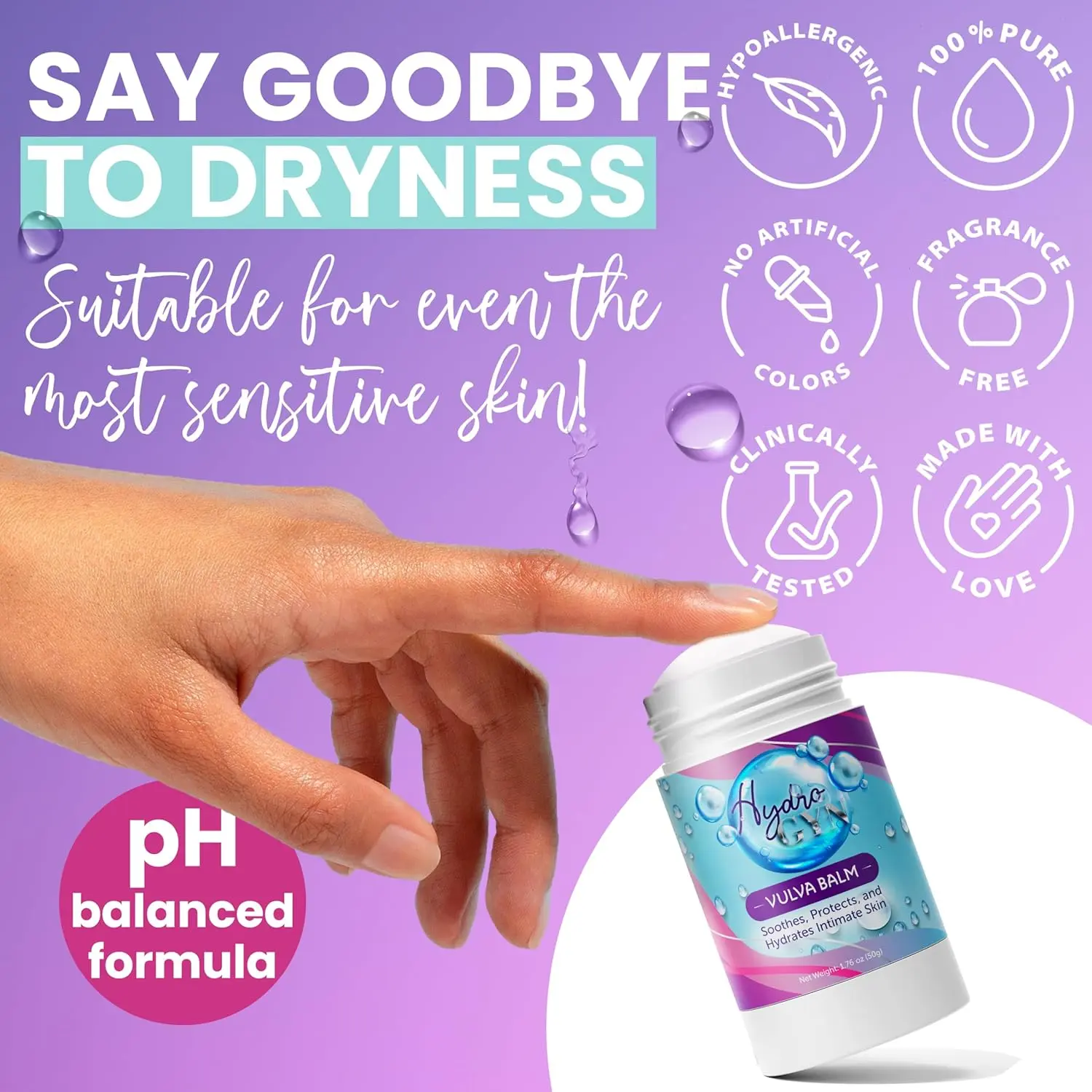 ·Daily Comfort for Your Intimate Skin – Say goodbye to dryness, irritation, and discomfort! HydroGyn Vulva Balm is a gentle, plant-based solution designed to deeply hydrate and nourish delicate skin, keeping you soft, refreshed, and confident every day.