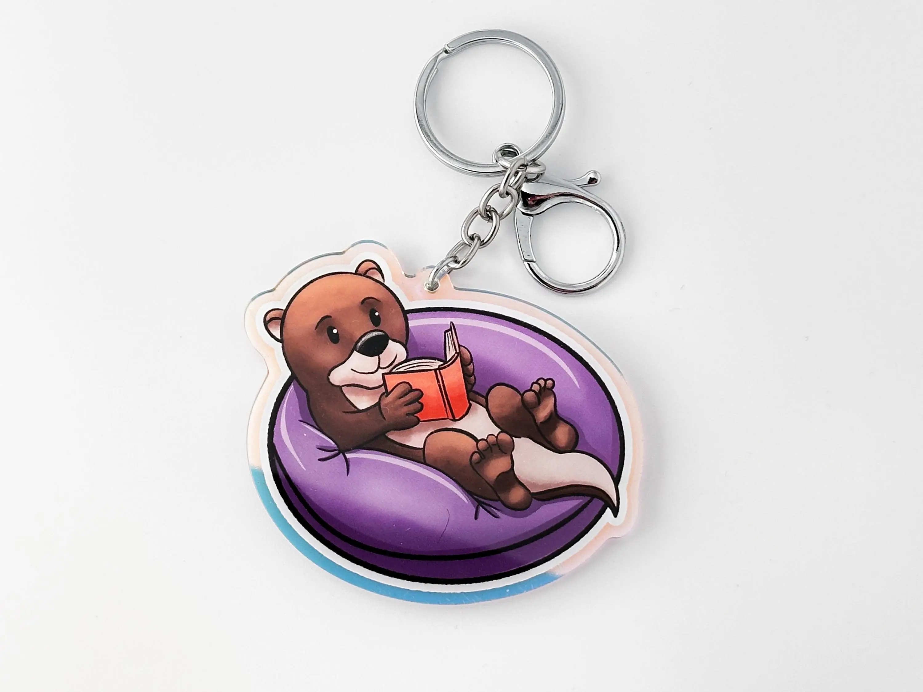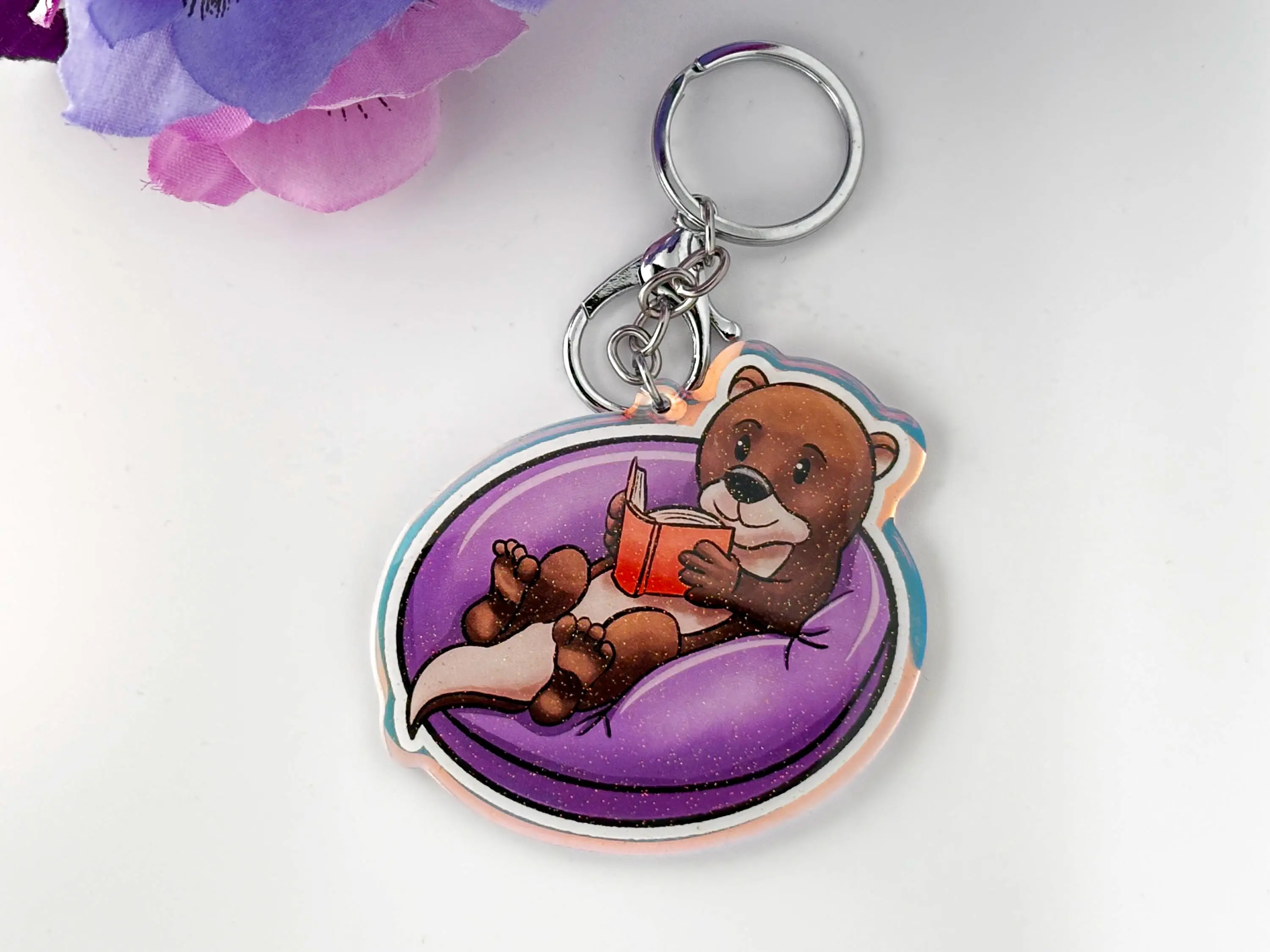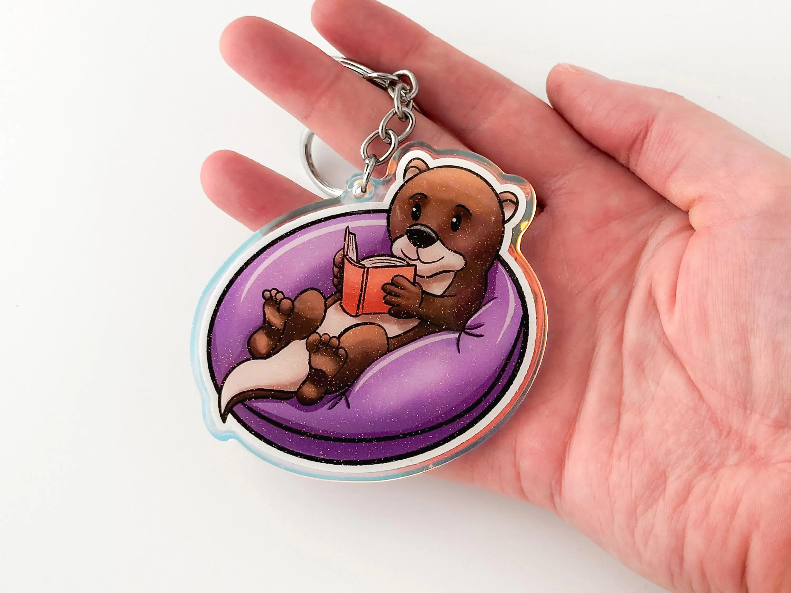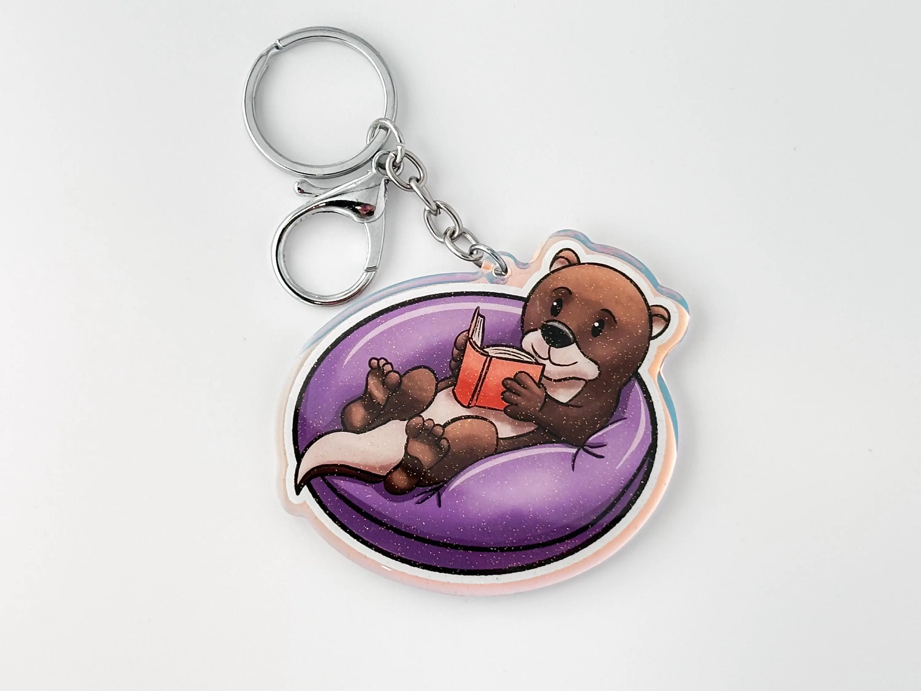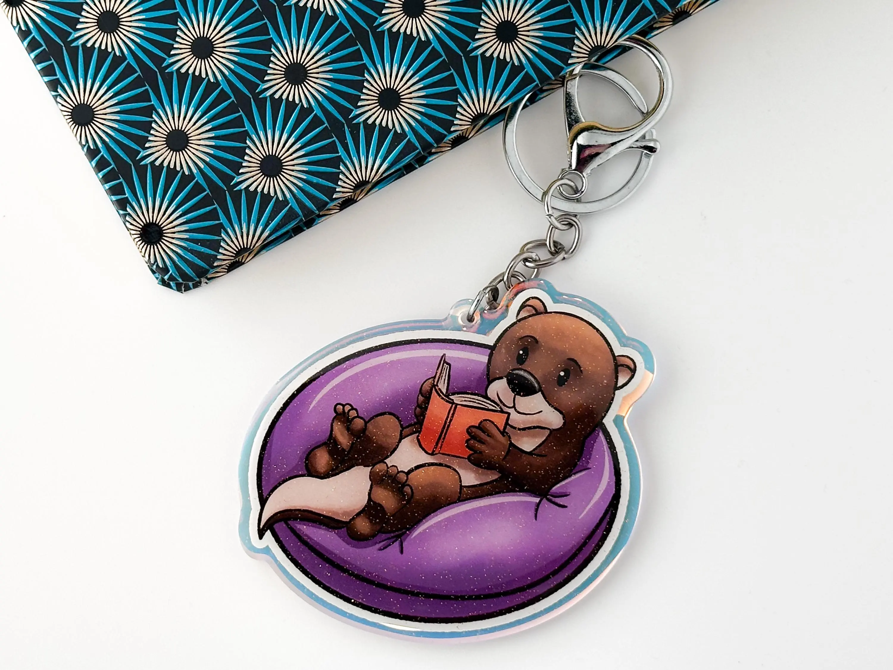 Book Lover Otter Keychain: Sparkly Acrylic Reader Gift