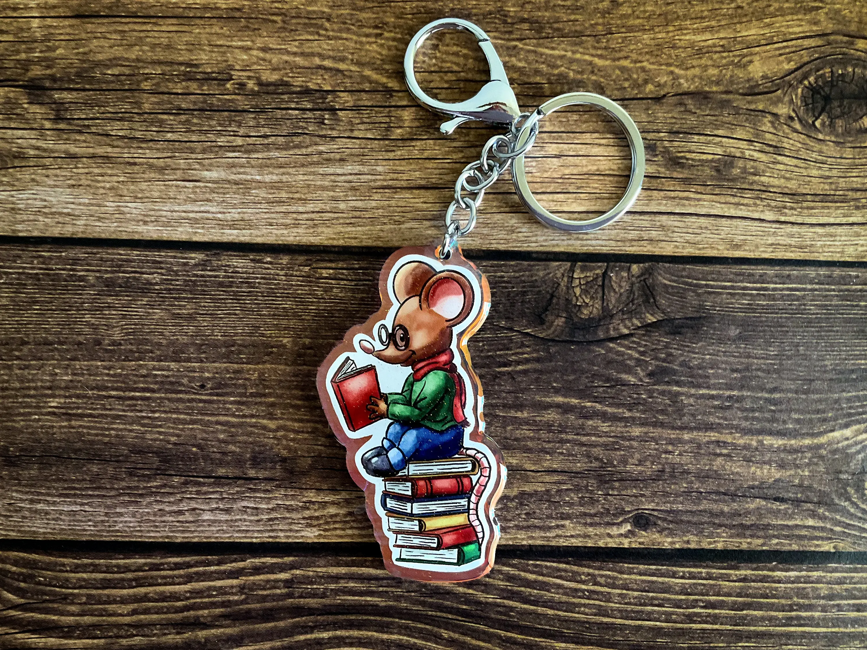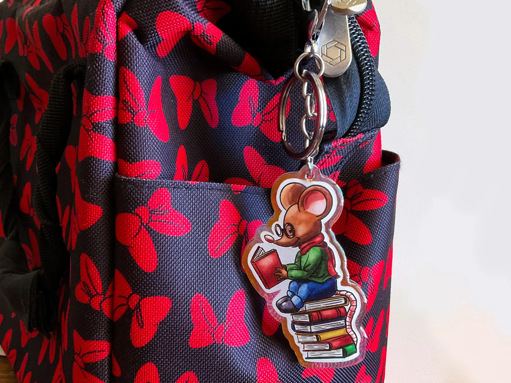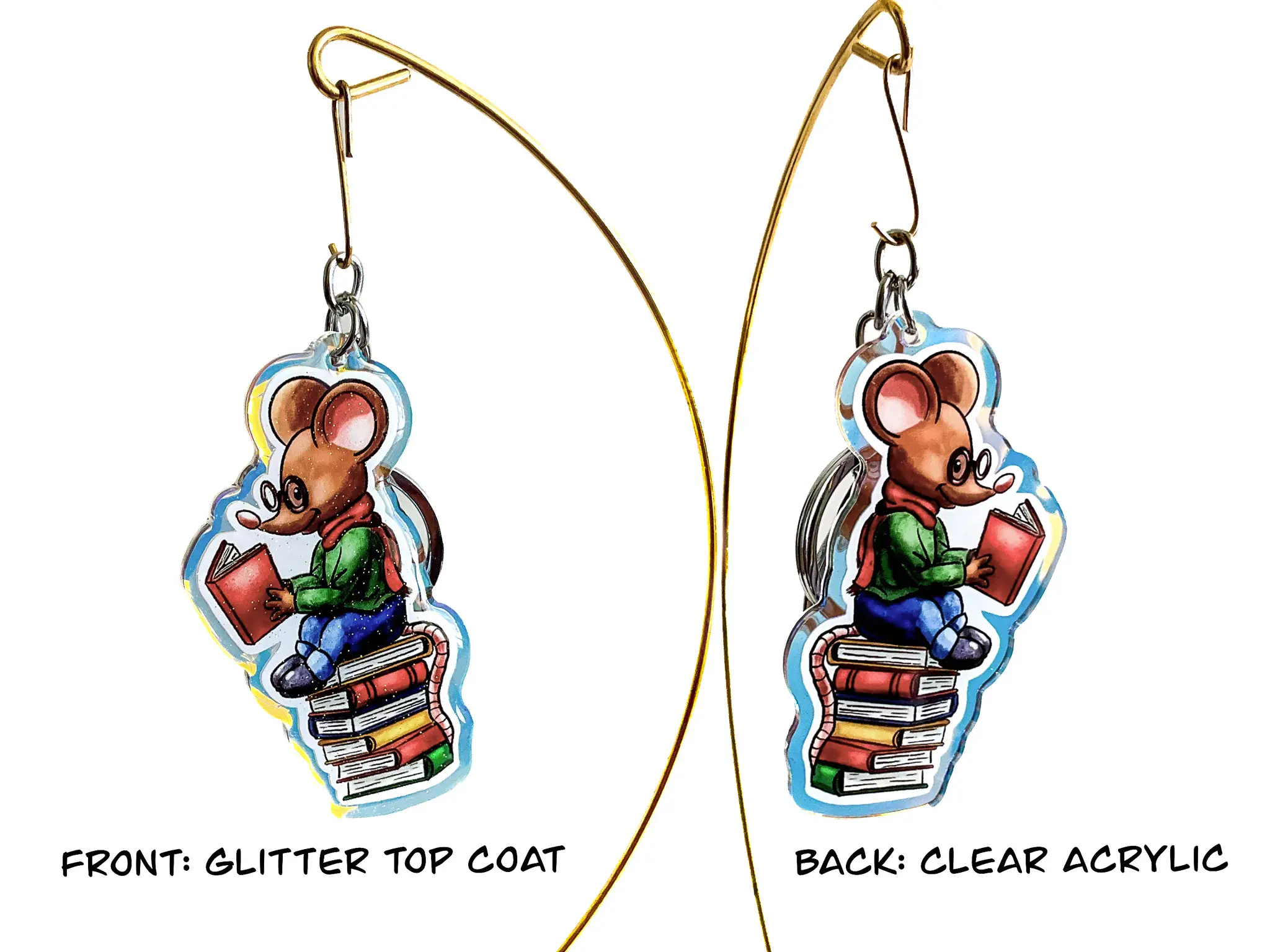 Bookish Mouse Acrylic Keychain: Sparkly Reader Gift