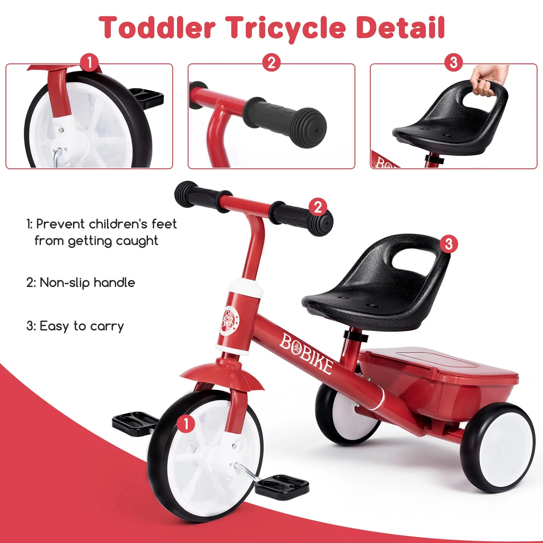 ·Easy Assembly & Adjustable Features: Setting up your new kids bike takes just minutes with our straightforward assembly process. The 3-level adjustable seat moves forward and backward to accommodate growing children from 2 to 5 years old. Removable footrests seamlessly transition from balance bike to full tricycle experience. The convenient backrest provides extra comfort.