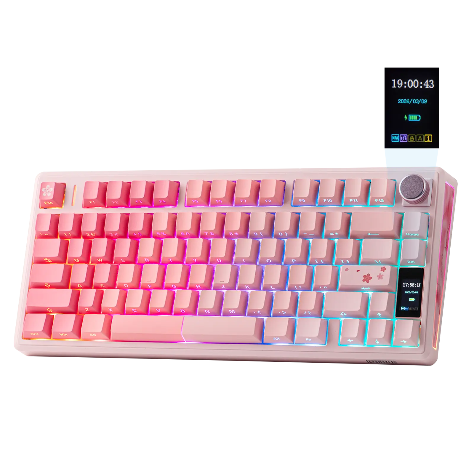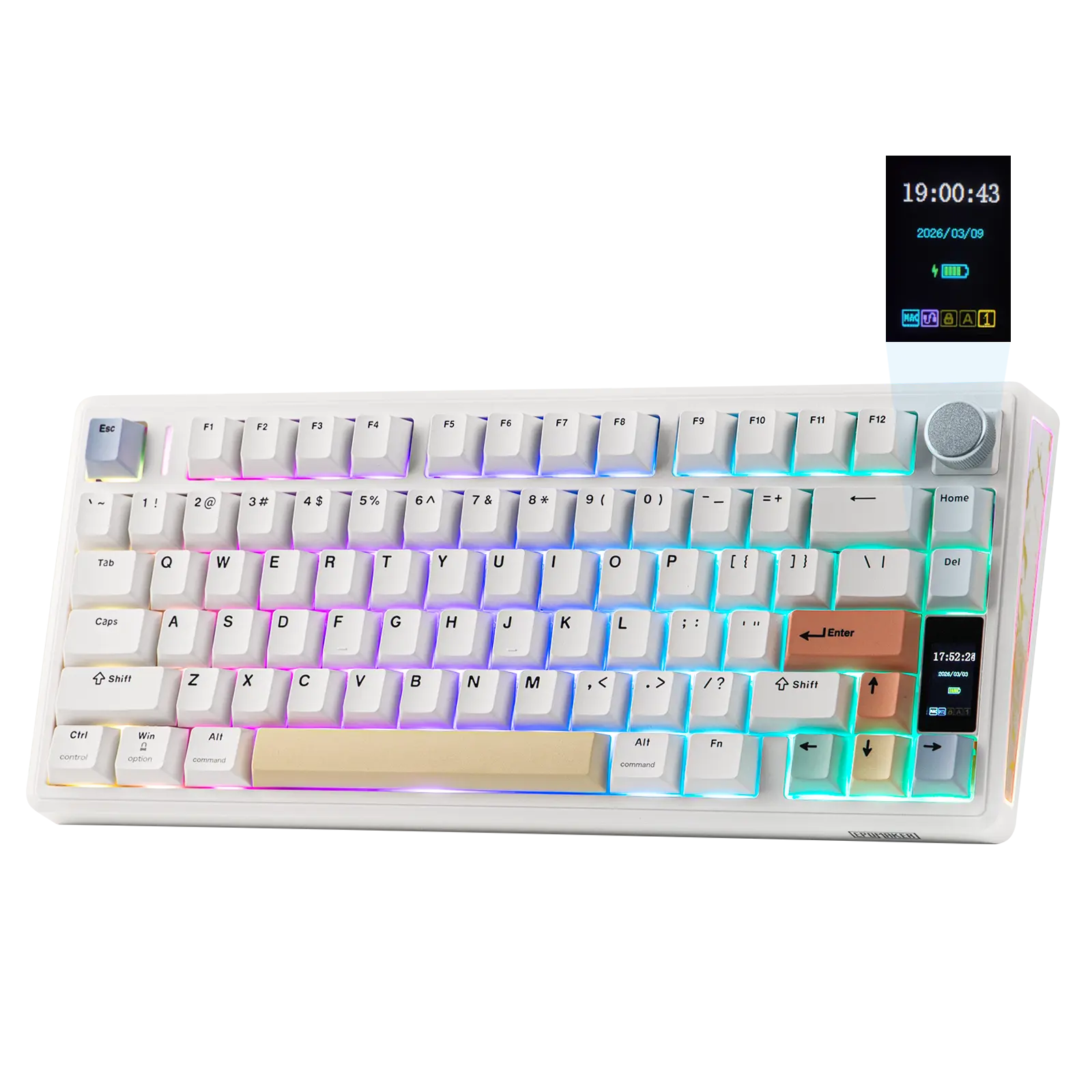 1.06-inch Glass Screen: Intuitively displaying time, battery percentage and keyboard status, the Gif-showing screen of TH80 V2 PRO mechanical keyboard serves as functional smart watch for mid-task checks without interrupting your task at hand. Use FN+Knob to toggle the volume knob for screen control, for intuitive RGB custom in brightness, colour, speed or effect type. Beyond utility, upload GIFs with the web software of TH80 V2 PRO custom keyboard, to showcase your likes and your beliefs with the TH80 V2 PRO RGB keyboard as the eye-catching center piece on your desk.