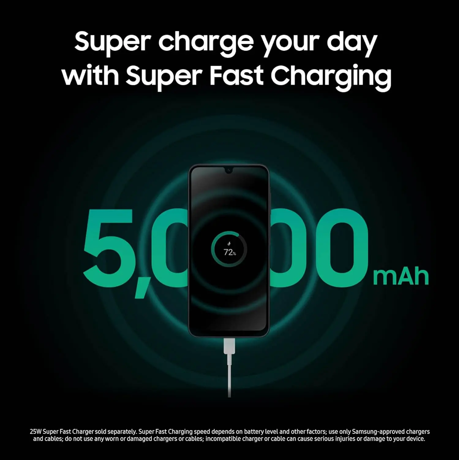 ·LIVE FAST. CHARGE FASTER: Focus more on the moment and less on your battery percentage with Galaxy A17 5G. Super Fast Charging powers up your battery so you can get back to life sooner.²