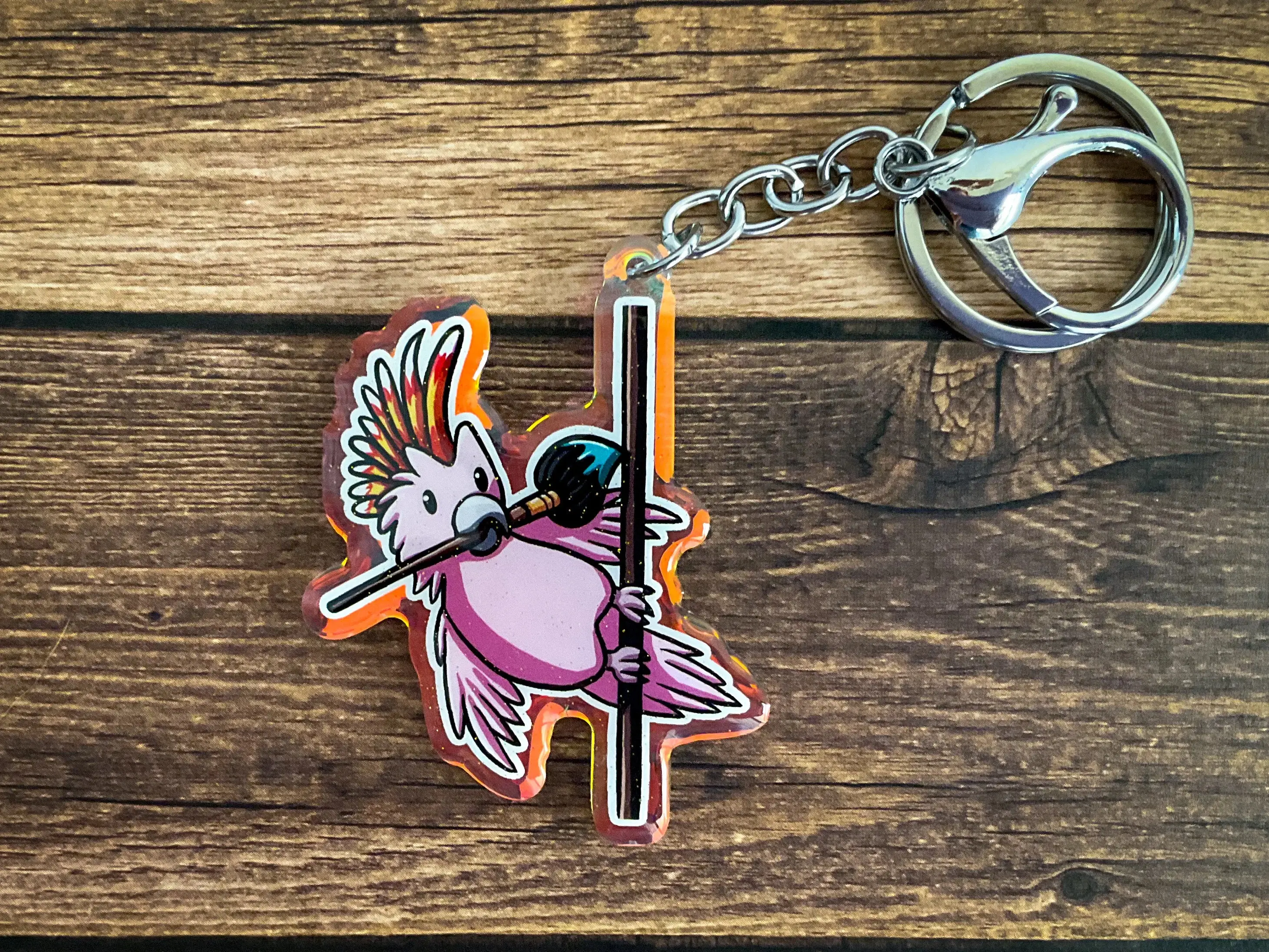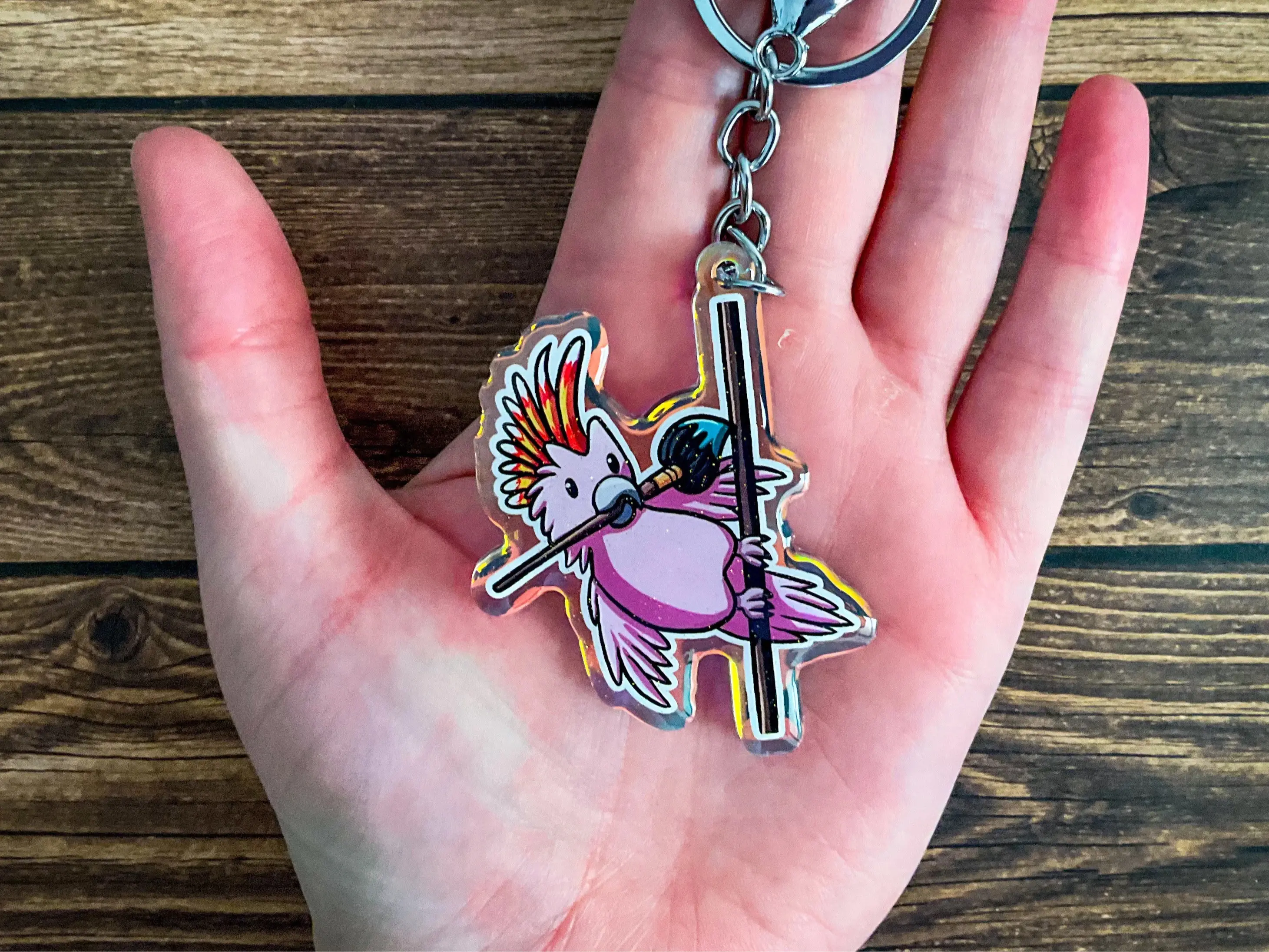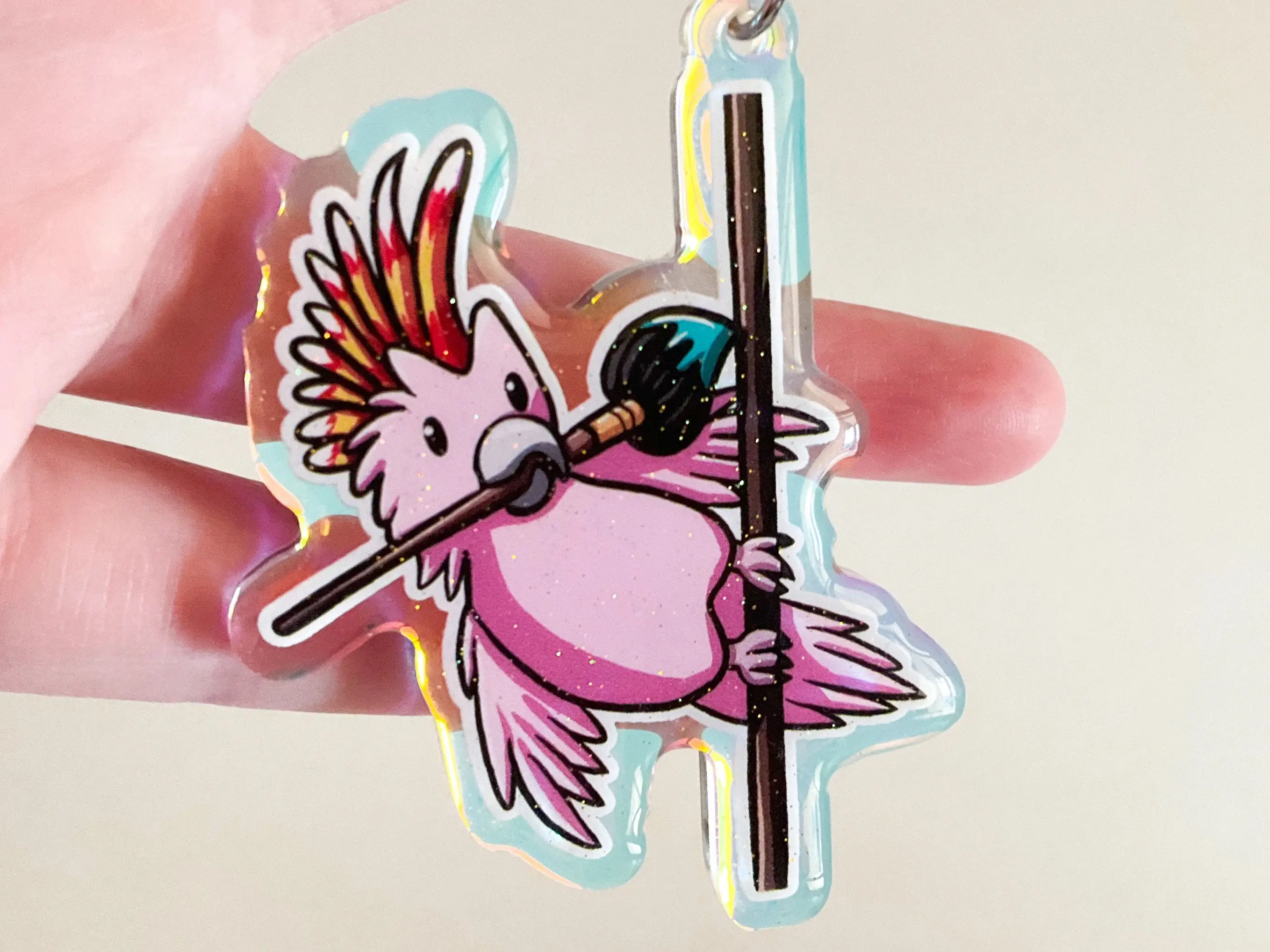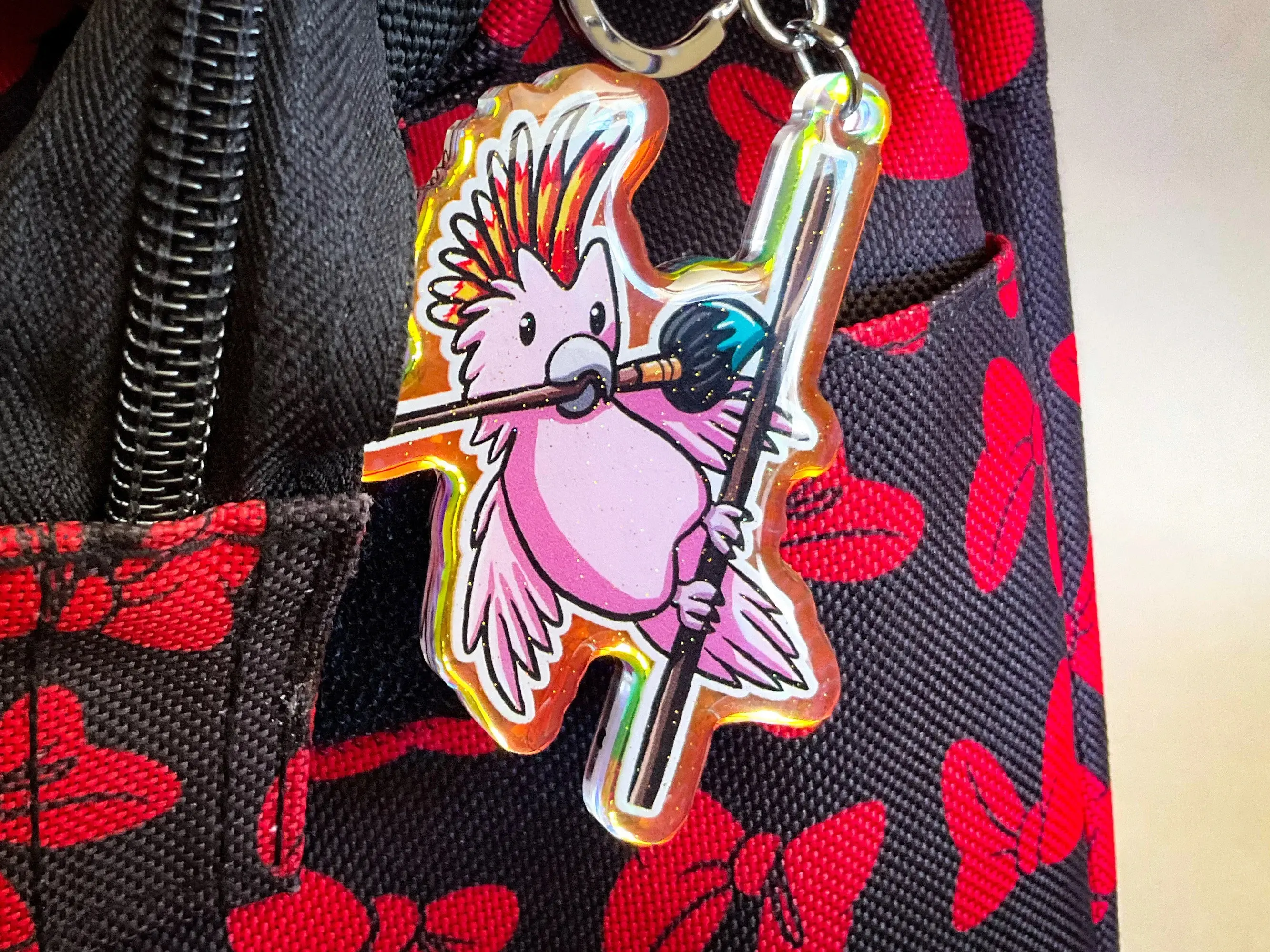 Holographic Cockatoo Keychain: Acrylic Bird Charm, Artist Gift
