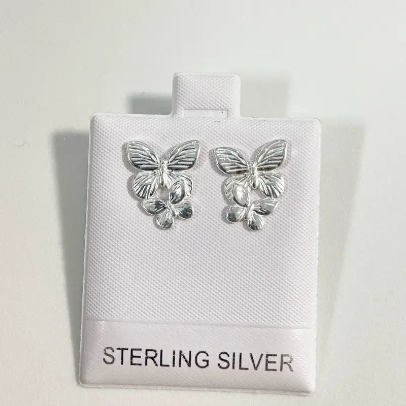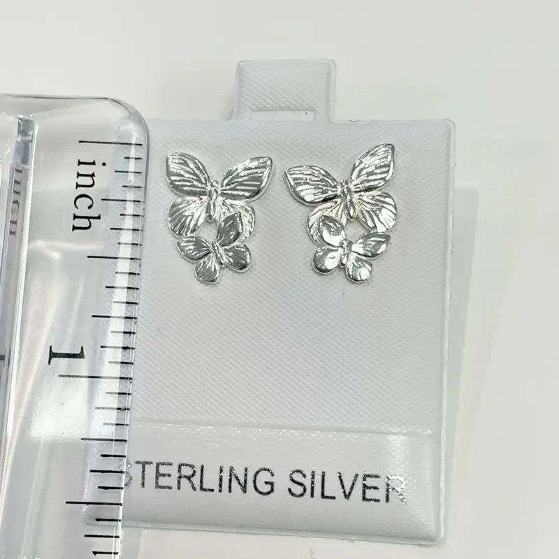 Sterling Silver 925 Two Butterflies Stud Earrings Jewelry