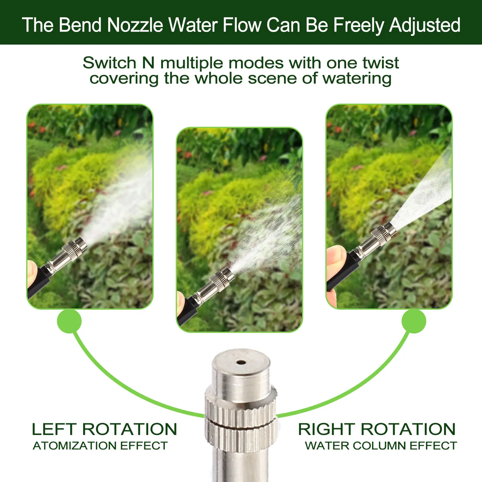 The product supports 360° precise adjustment and can be wrapped around trees for drip irrigation. The brass nozzle provides three water flow modes, flexible to switch for different scenarios.