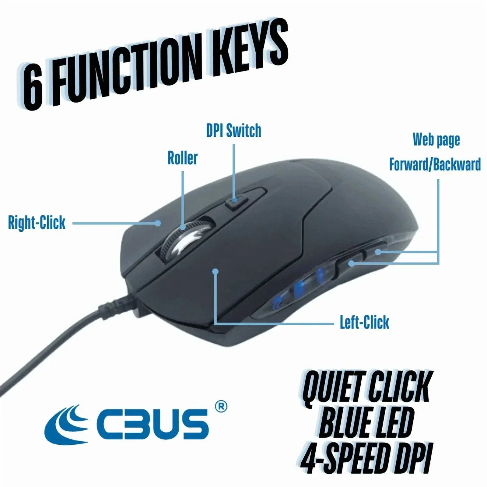 CBUS Wired Gaming Mouse | 6 Buttons | Quiet Click | 4 DPI Speeds | LED Backlight