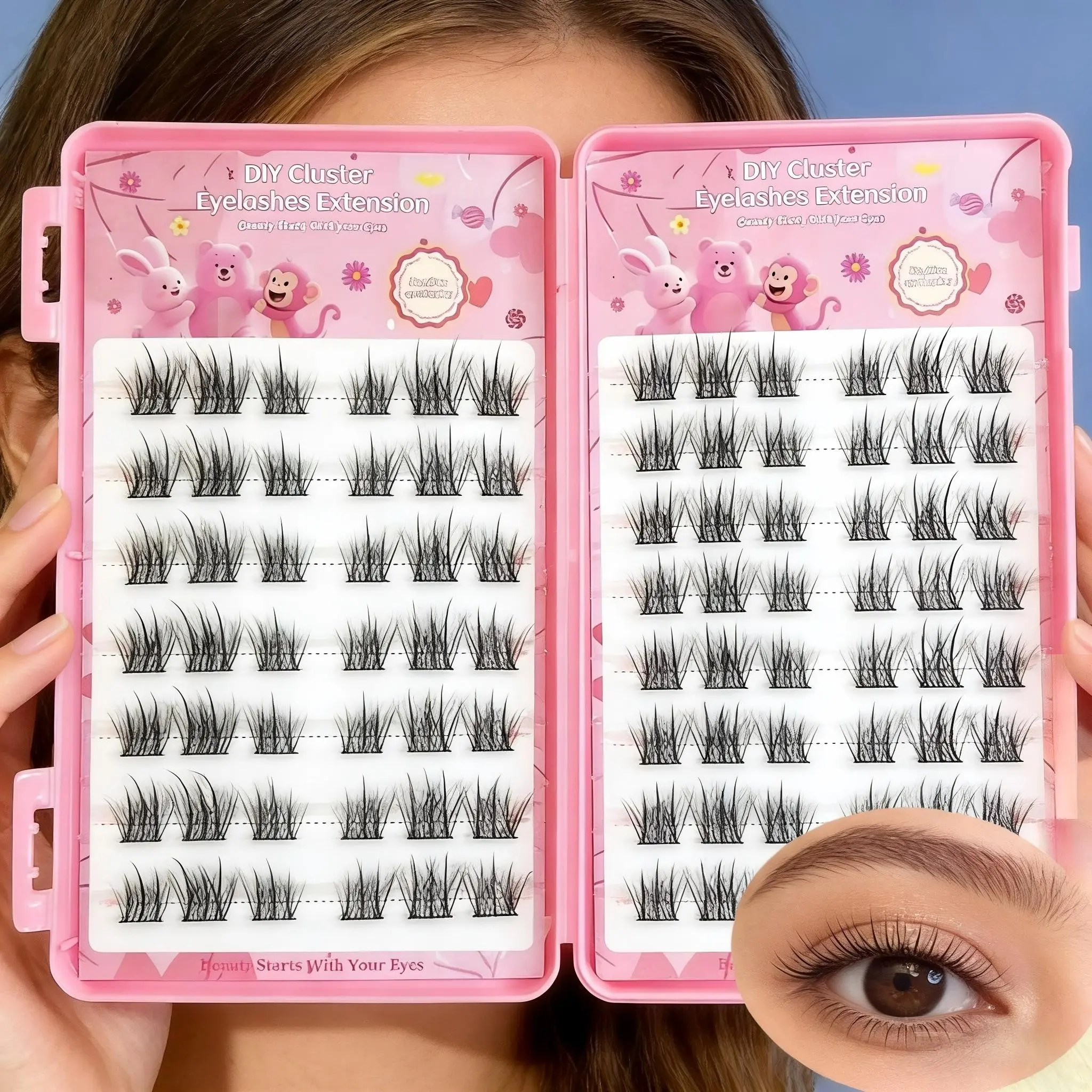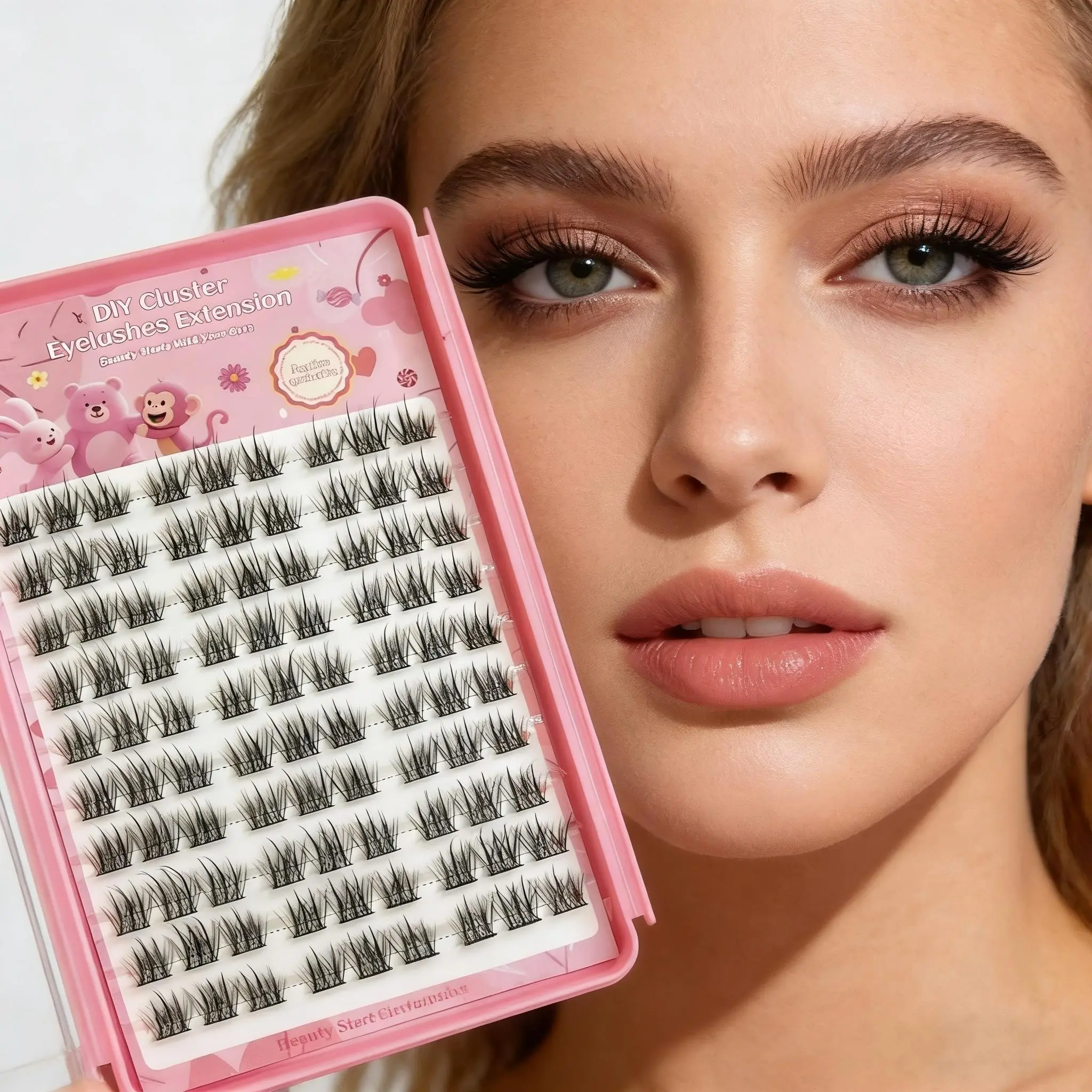 Glue-Free Cluster Lashes 120pcs | Fox Eye Dramatic | Easy Wear Eyelash Extension
