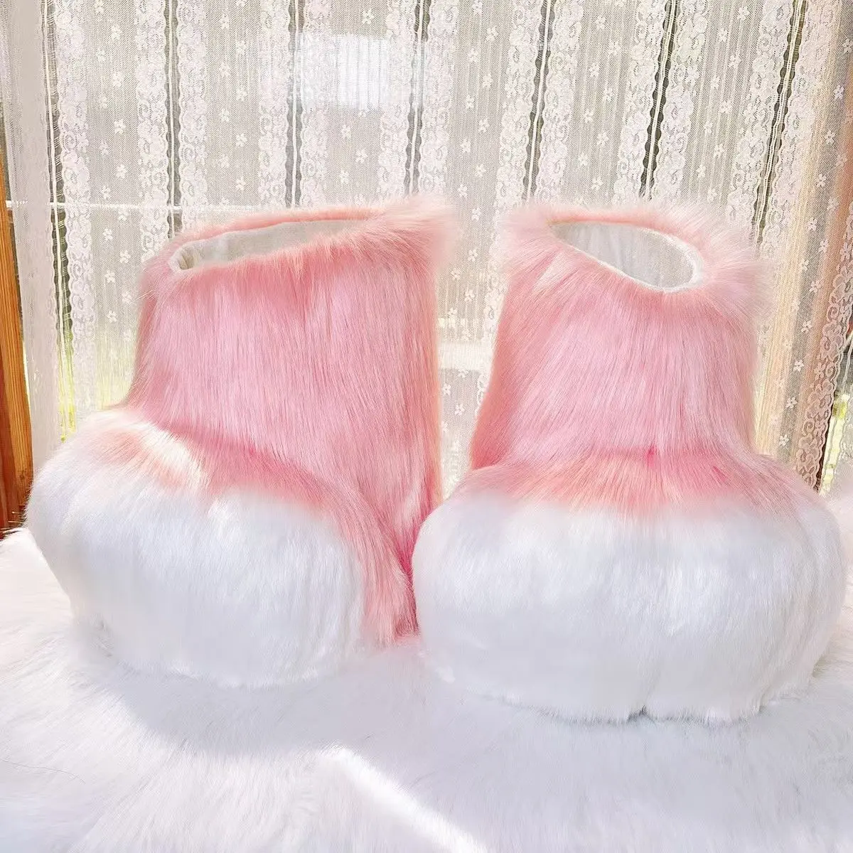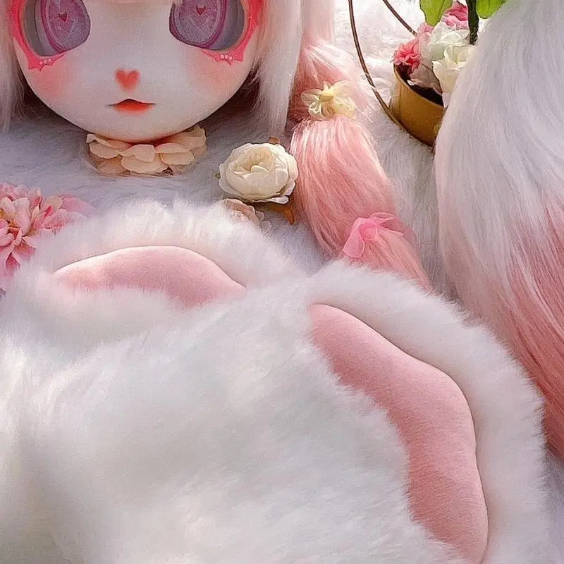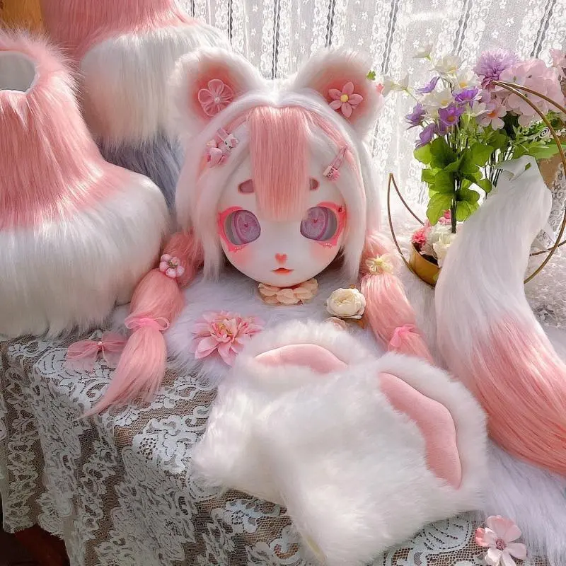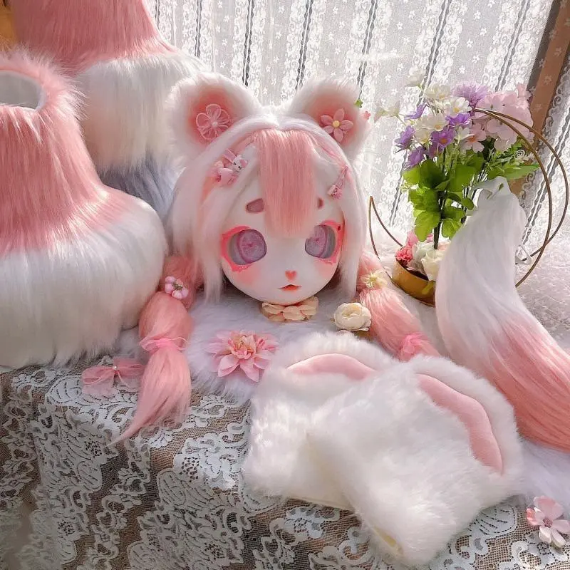 Fursuit Kigurumi Furry Cosplay Costume Pink Little Bear Head Paw Tail Shoes Comiket Furries Doll Kig for Kids Adults Dress up