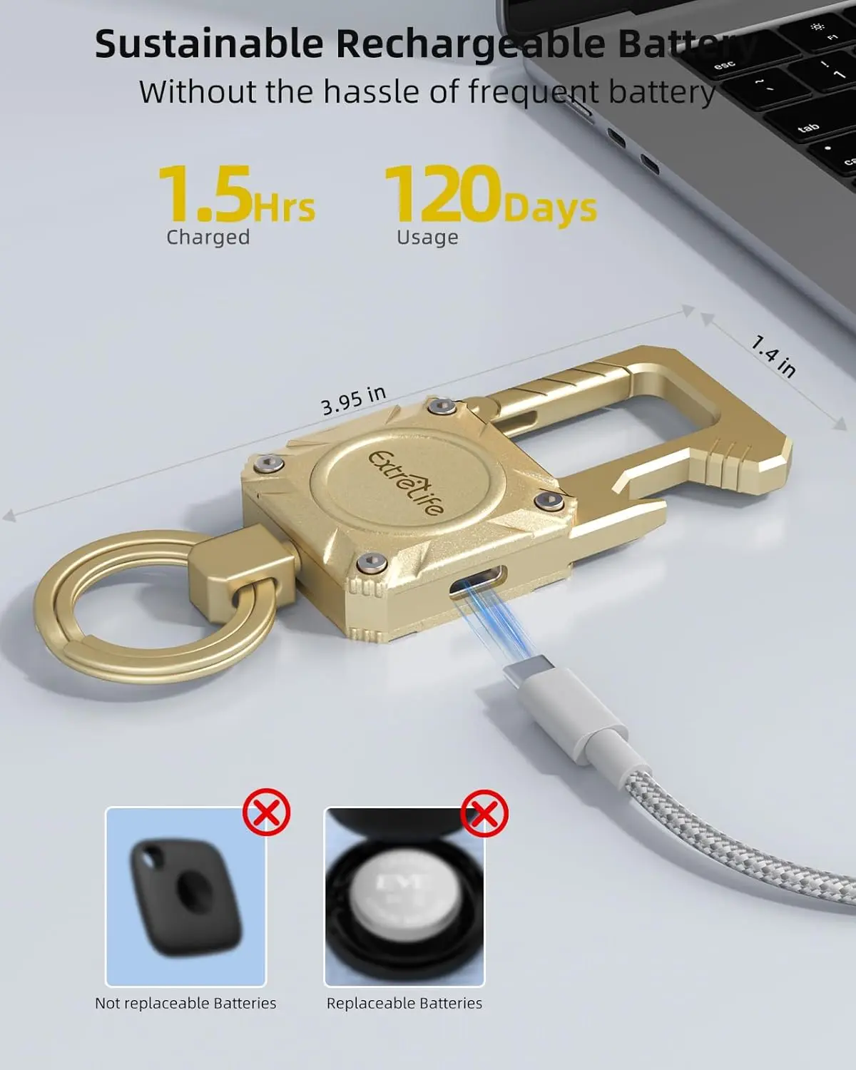 ·【Durability and Rechargeable Battery】It’s made from rugged stainless steel and metal cases, offers excellent protection against drops and scratches. The Battery of the keychain is rechargeable, last up to 4 Months on a single charge. Comparison with trackers that don’t have replaceable batteries, which means you don't have to replace the entire unit whenever it dies. It saves costs in the long term and makes the tracker sustainable.