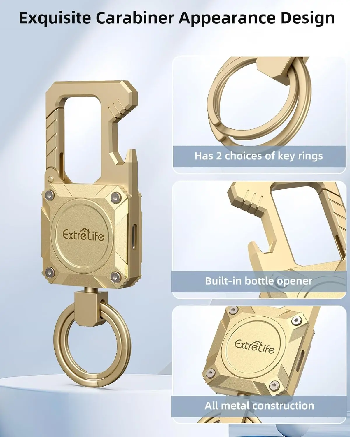 ·【Works with Apple Find My】 For iPhone owners,the Extrelife's latest Keychain is for tracking and locating your Key and items. With Apple’s Find My network has by far the largest number of devices, makes it more likely that you’ll recover what you’ve misplaced. It comes with 2 key rings and carabiner, so just connect and go.