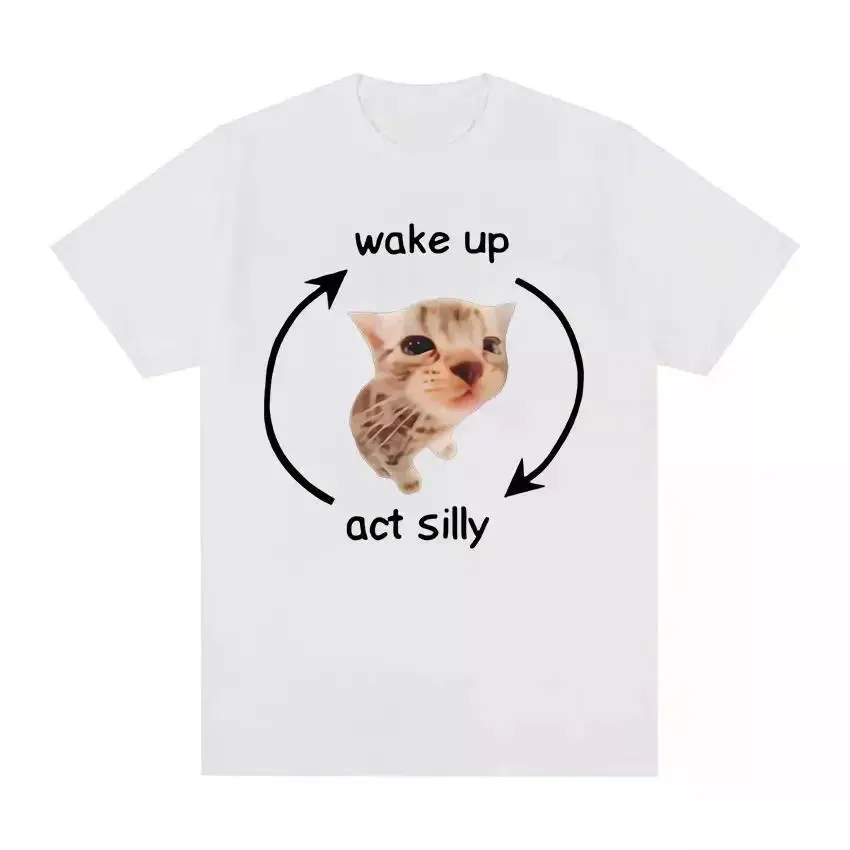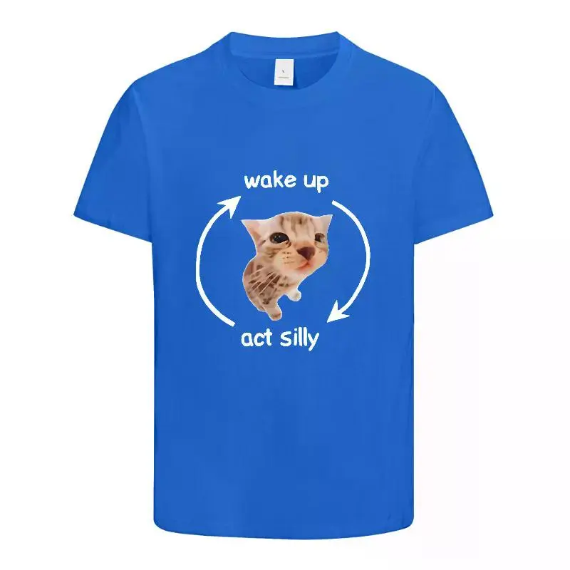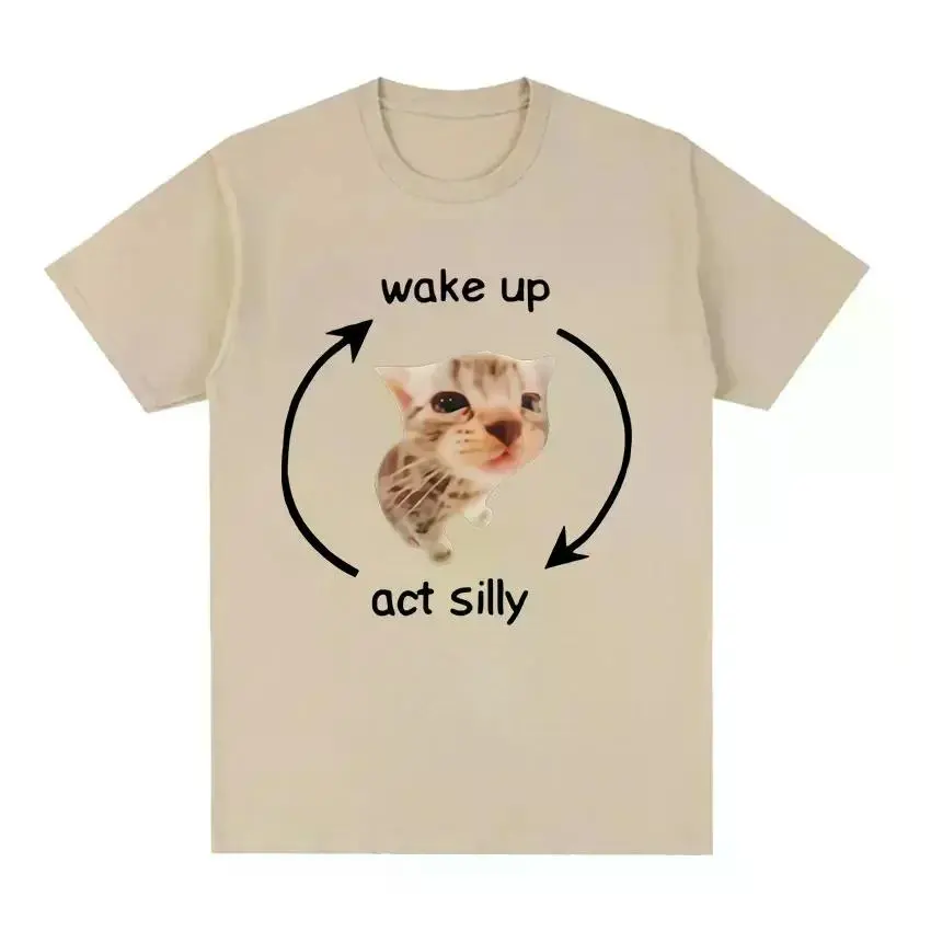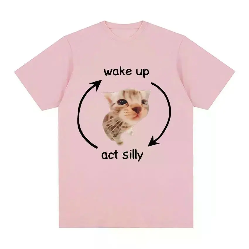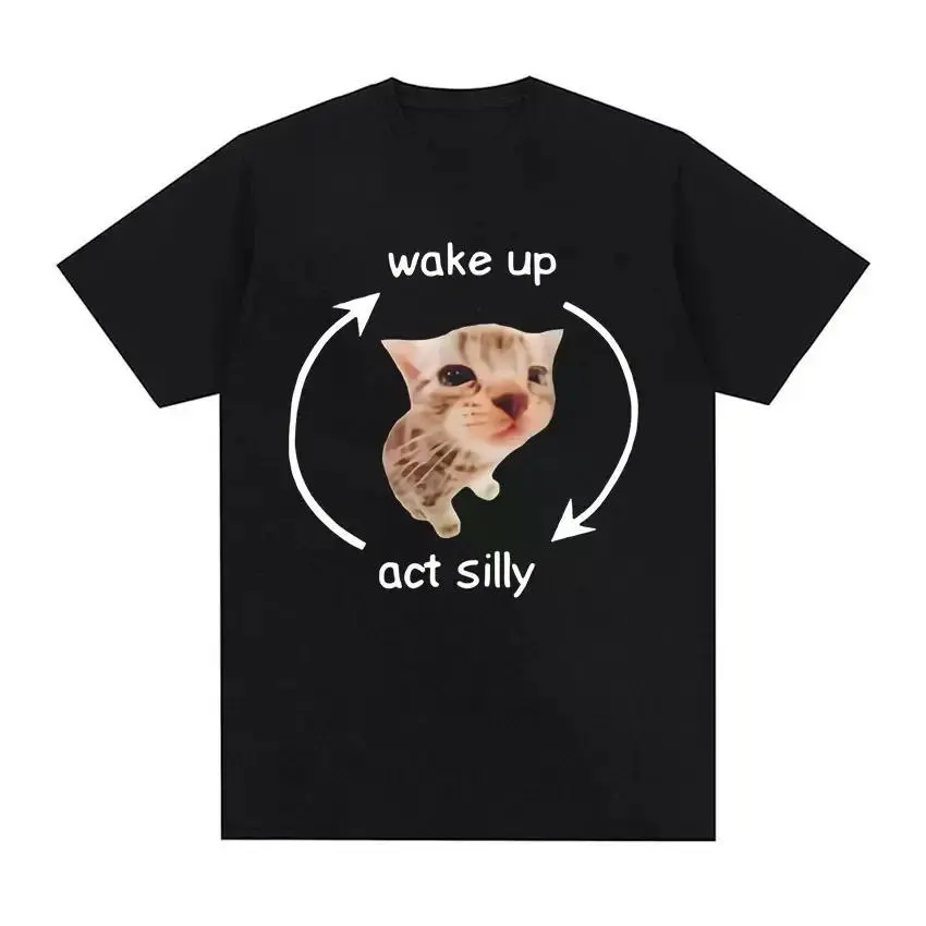 Wake Up Act Silly Meme Graphic T Shirt Funny Cute Cat Print Short Sleeve T-shirt Men Women Casual Oversized T ShirtsGraphic Tee Graphic T-shirt Shortsleeve Menswear