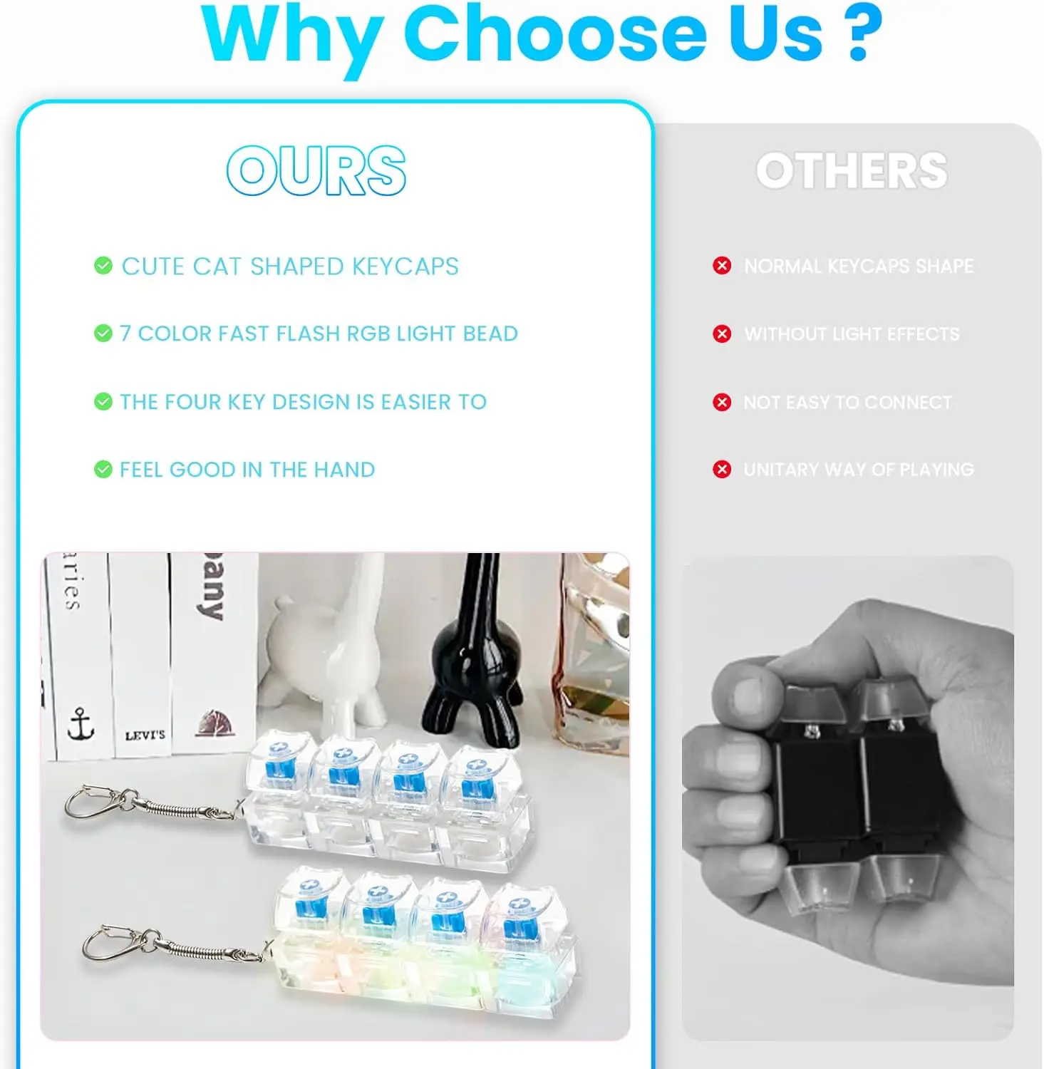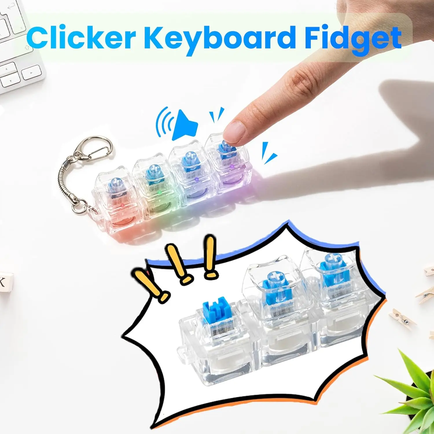 ·Quality Material】Keyboard fidget toy is mainly made of high-quality plastic and zinc alloy, sturdy and smooth, not easy to fade or deform, and can be used for a long time. And the fidget keyboard cap and key chain of this finger clicker can be taken off or installed; you can DIY as you like.