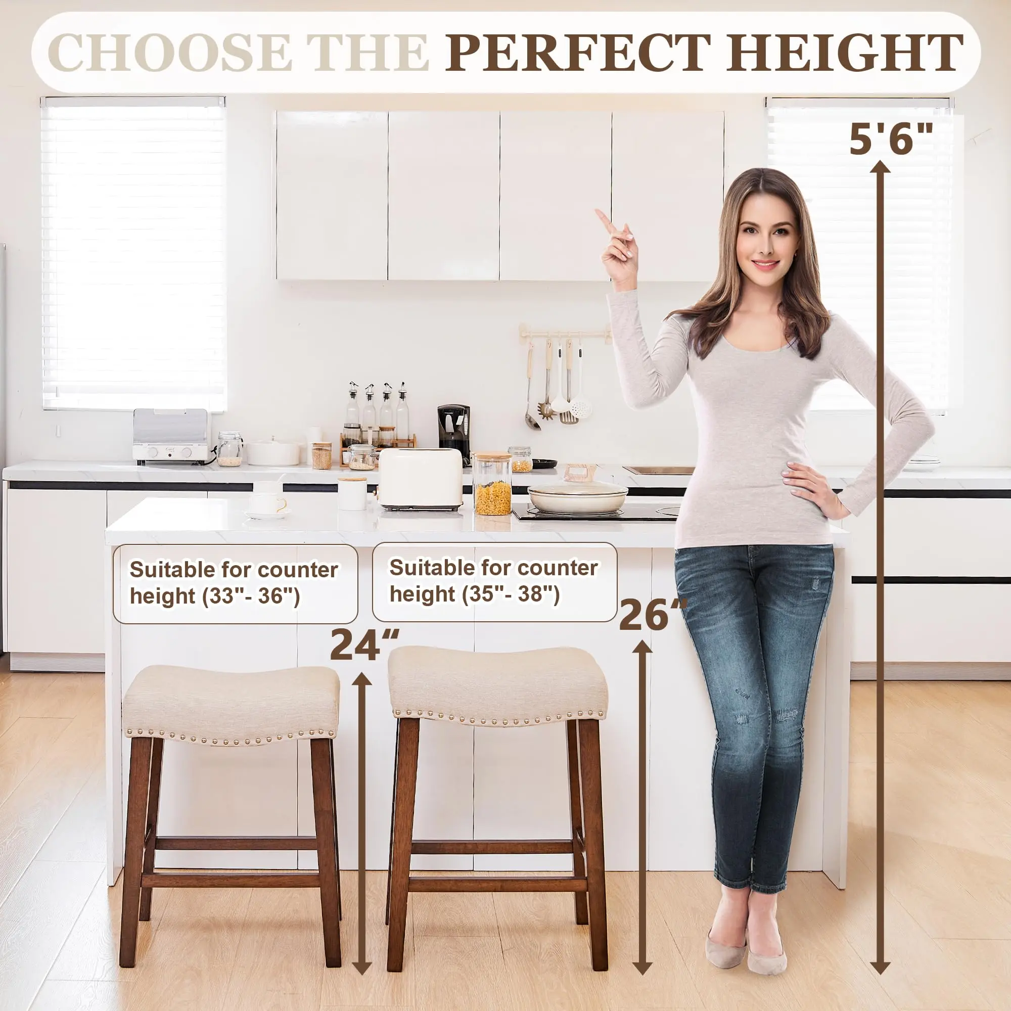 Ideal for standard counter height (35"–38")