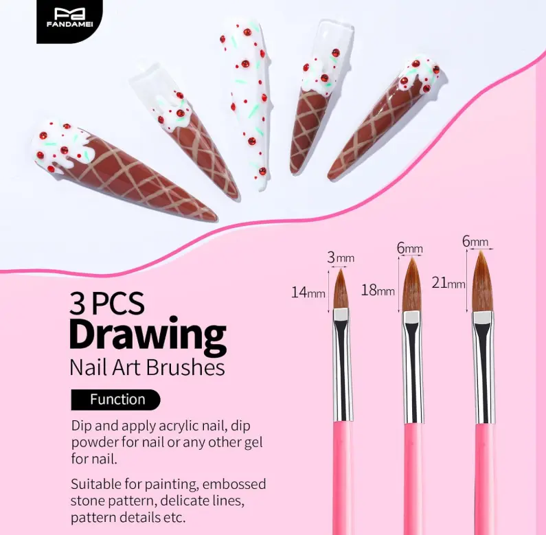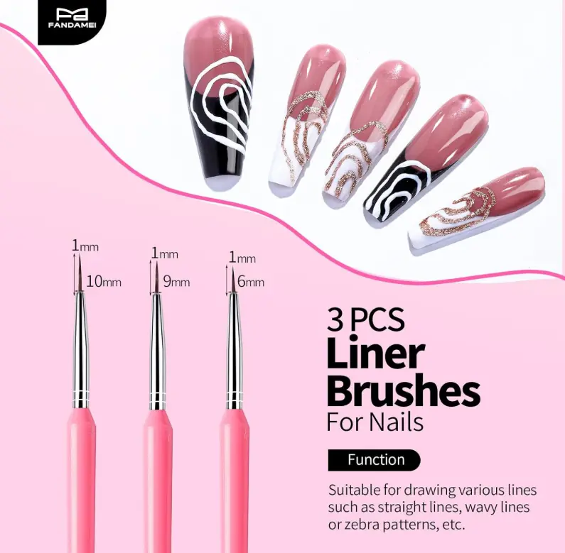 ·Presentable Pink Nail Brushes For Nail Art: The acrylic nail brush is made from acrylic and nylon fiber. Nail brush with flat head fit for french manicure, checkered color block, etc., also for gradient effects and three-dimensional pattern drawing. Drawing nail art brushes are suitable for painting, embossed stone pattern, delicate lines, pattern details etc. The liner brushes for nails suit for drawing various lines such as straight lines, wavy lines or zebra patterns, etc.