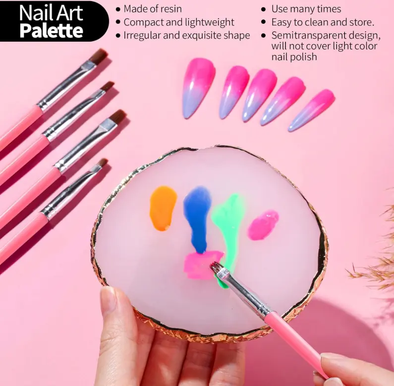 ·White Resin Nail Art Palette For Nail Design: Made of resin, smooth surface; translucent white color, suit for showing color of nail polish or nail gel, even the light color; easy to clean and store; firmly enough to use for many times. As a practical helper, the nail polish palette is easy to use with nail brush, help to create your nail art work.