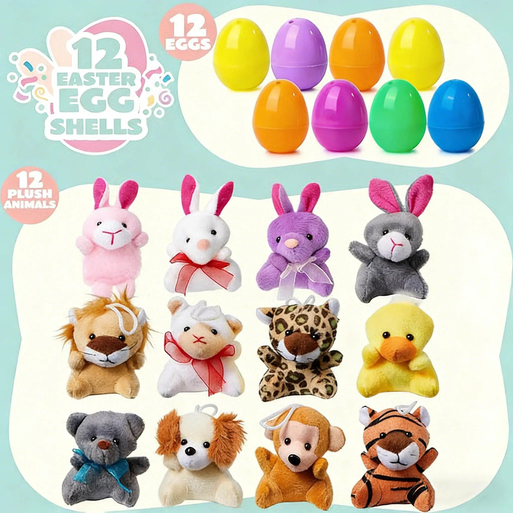 ·Plush Bunny Included: Each egg comes with a plush bunny, adding a fun surprise for kids. 🐰