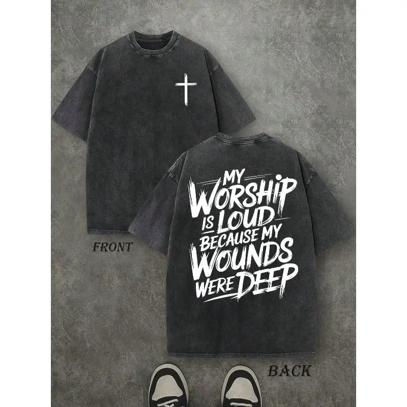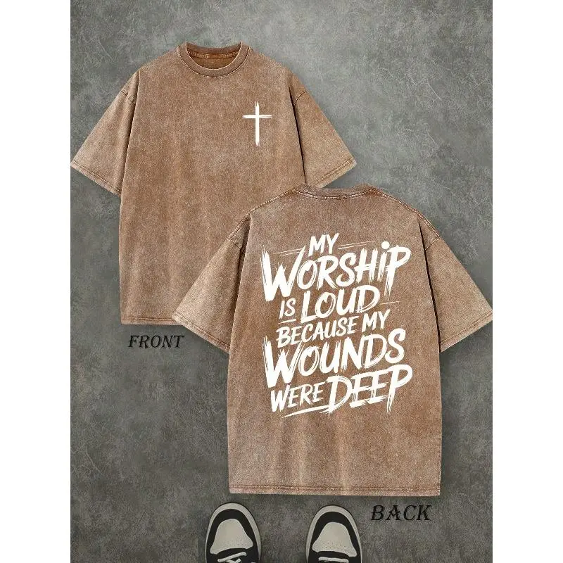 My Worship Is Loud Because My Wounds Were Deep Unisex Washed Christian Shirt, Christian Scripture T-Shirt, Vintage Retro Washed Shirt Double Sided Printed