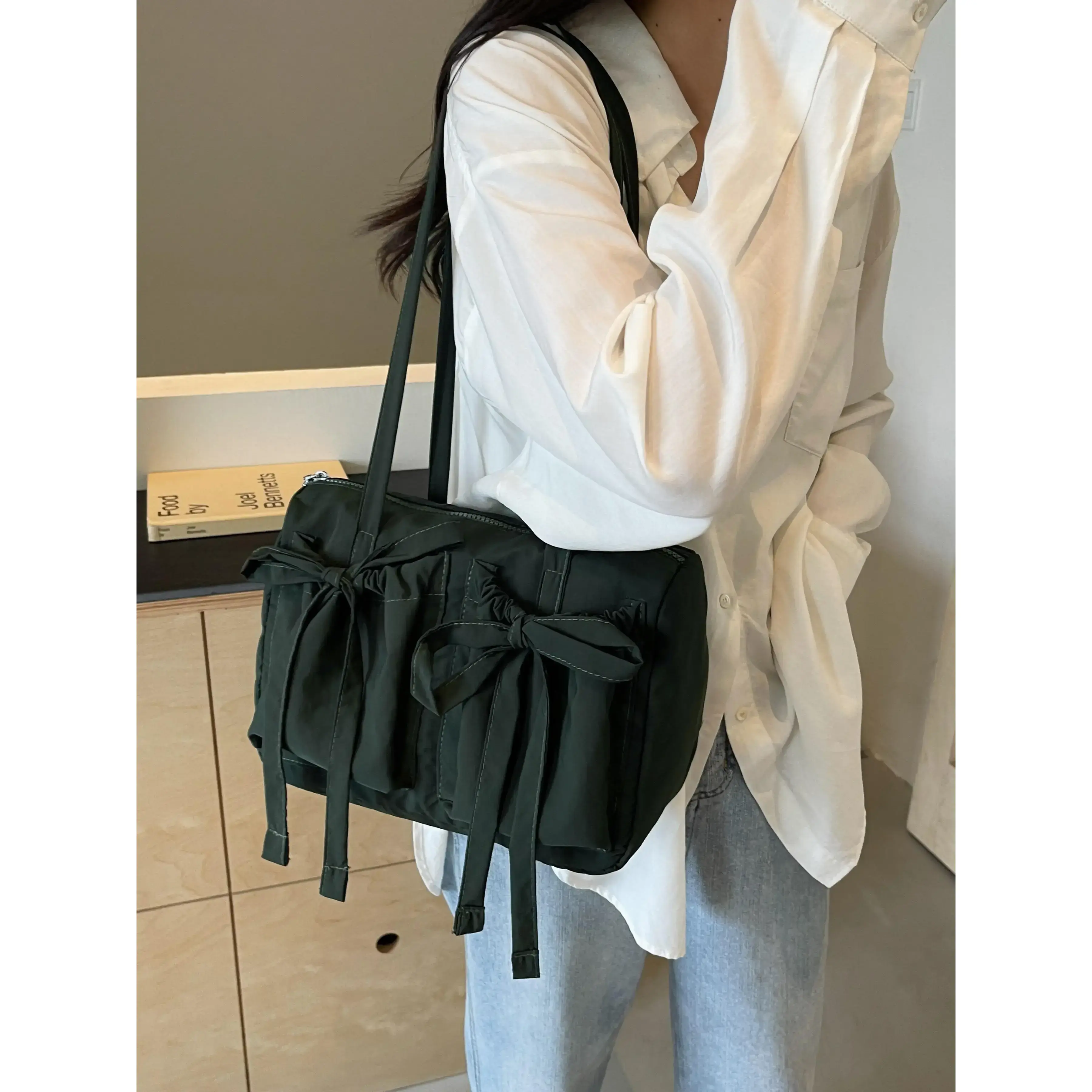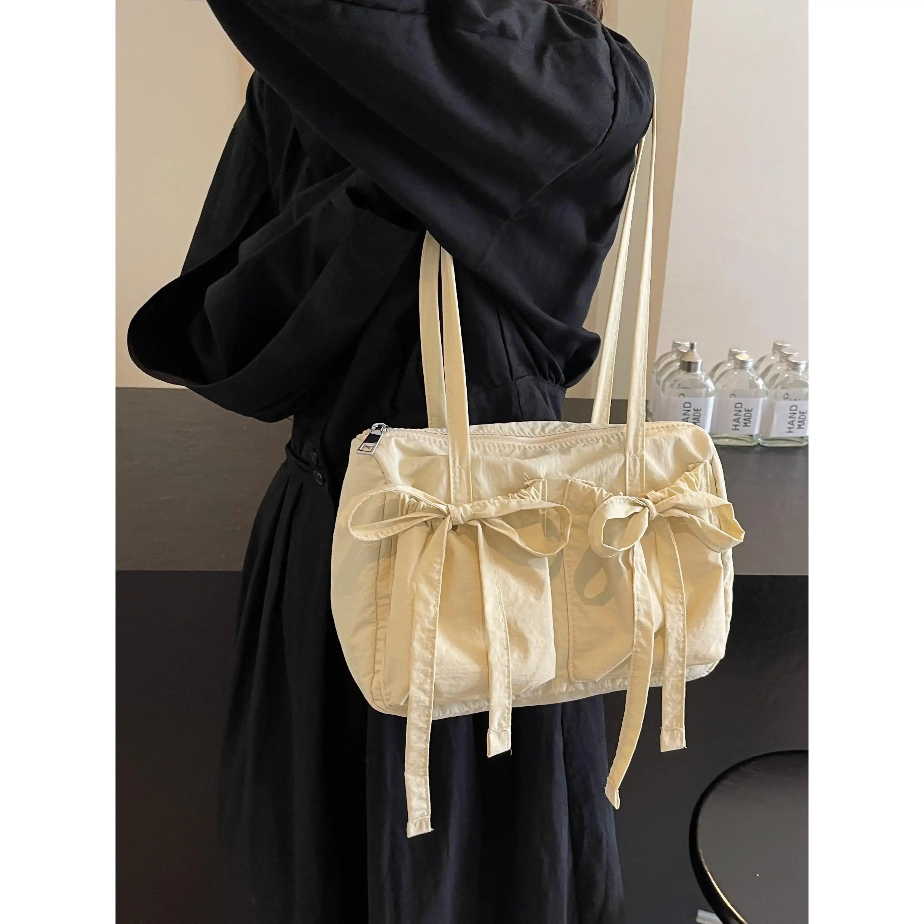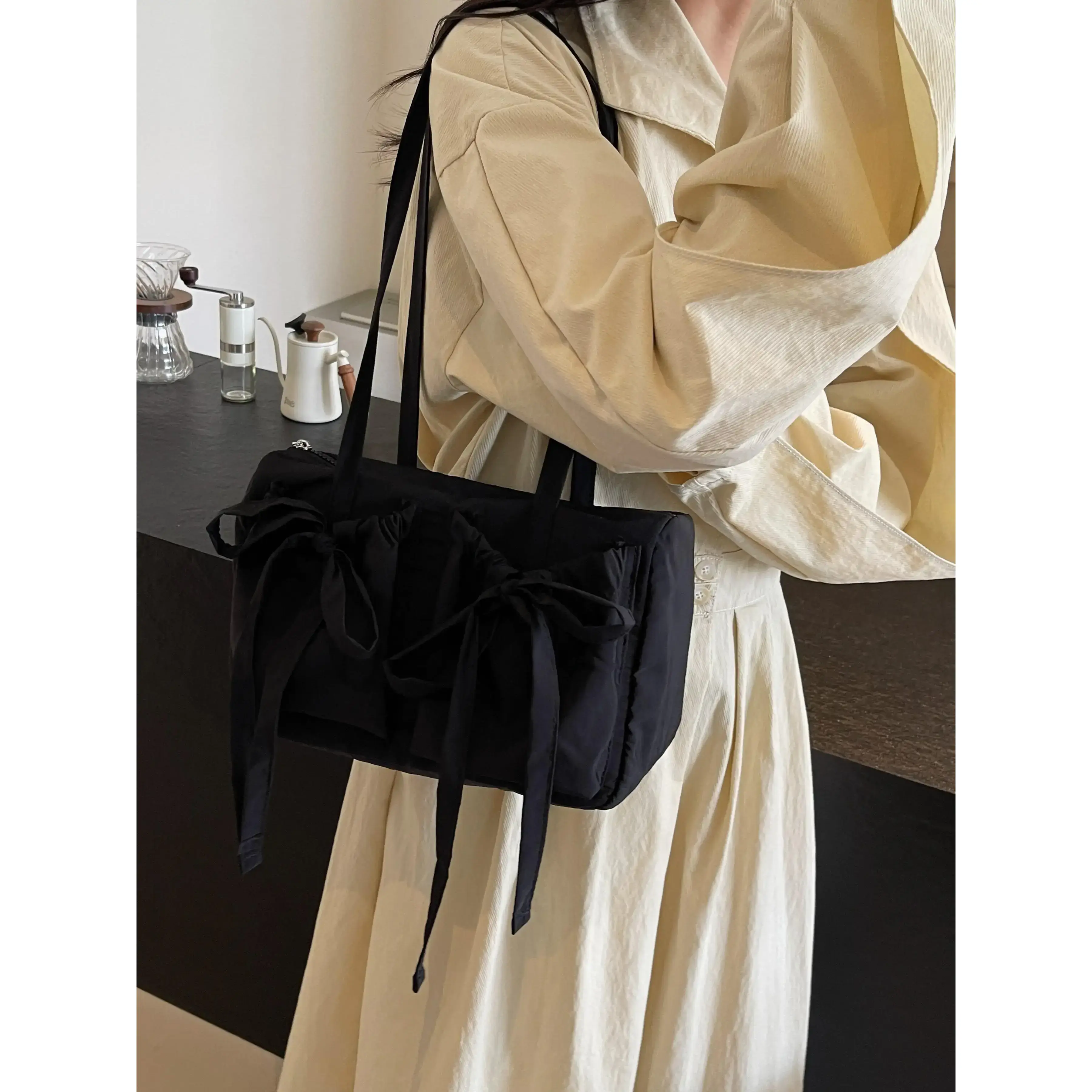 5. Women's Solid Color Bow Decor, Large Capacity Shoulder Bag for Daily Used, Casual Trendy Versatile High-quality Daily Commuting Bag, Casual Commuter Bag