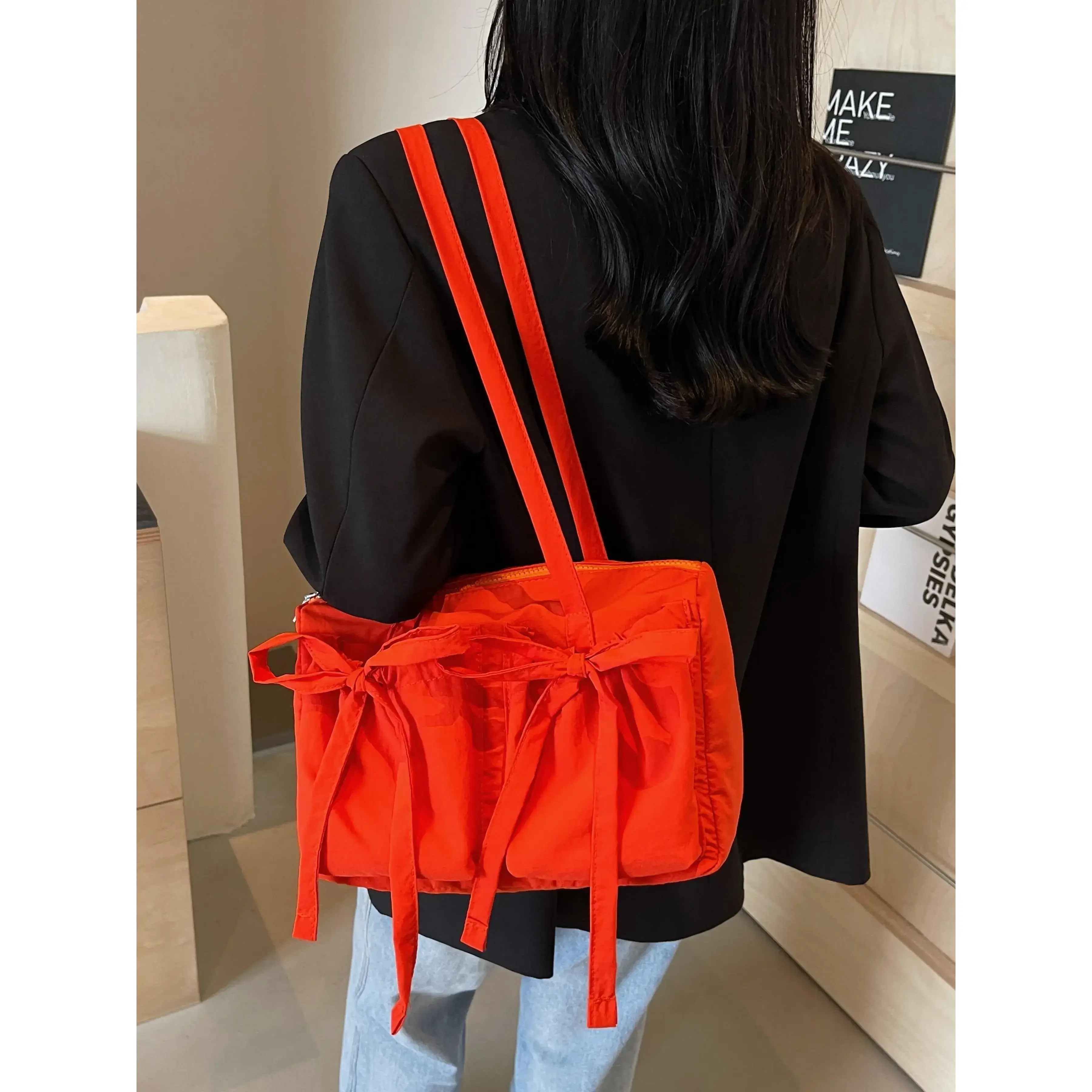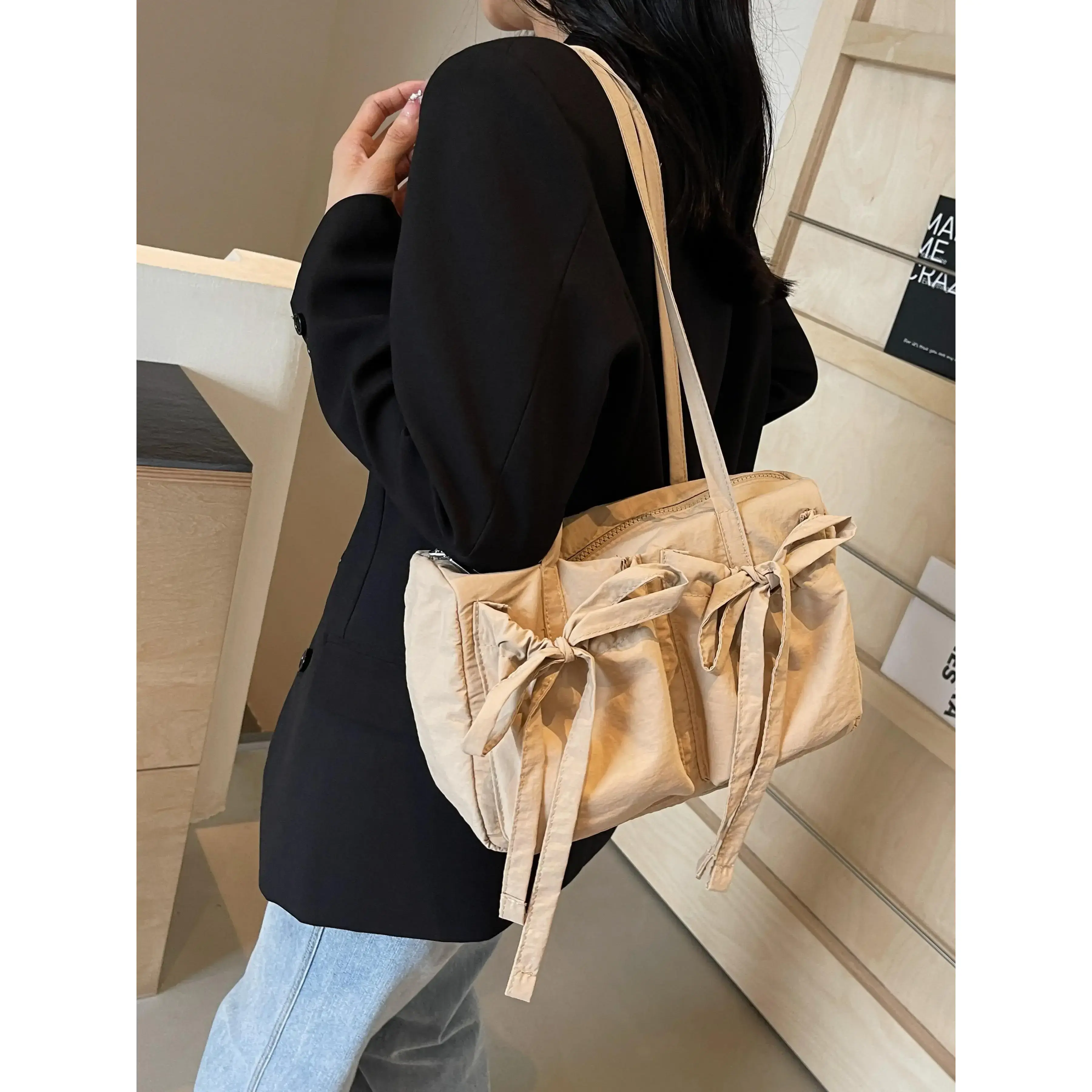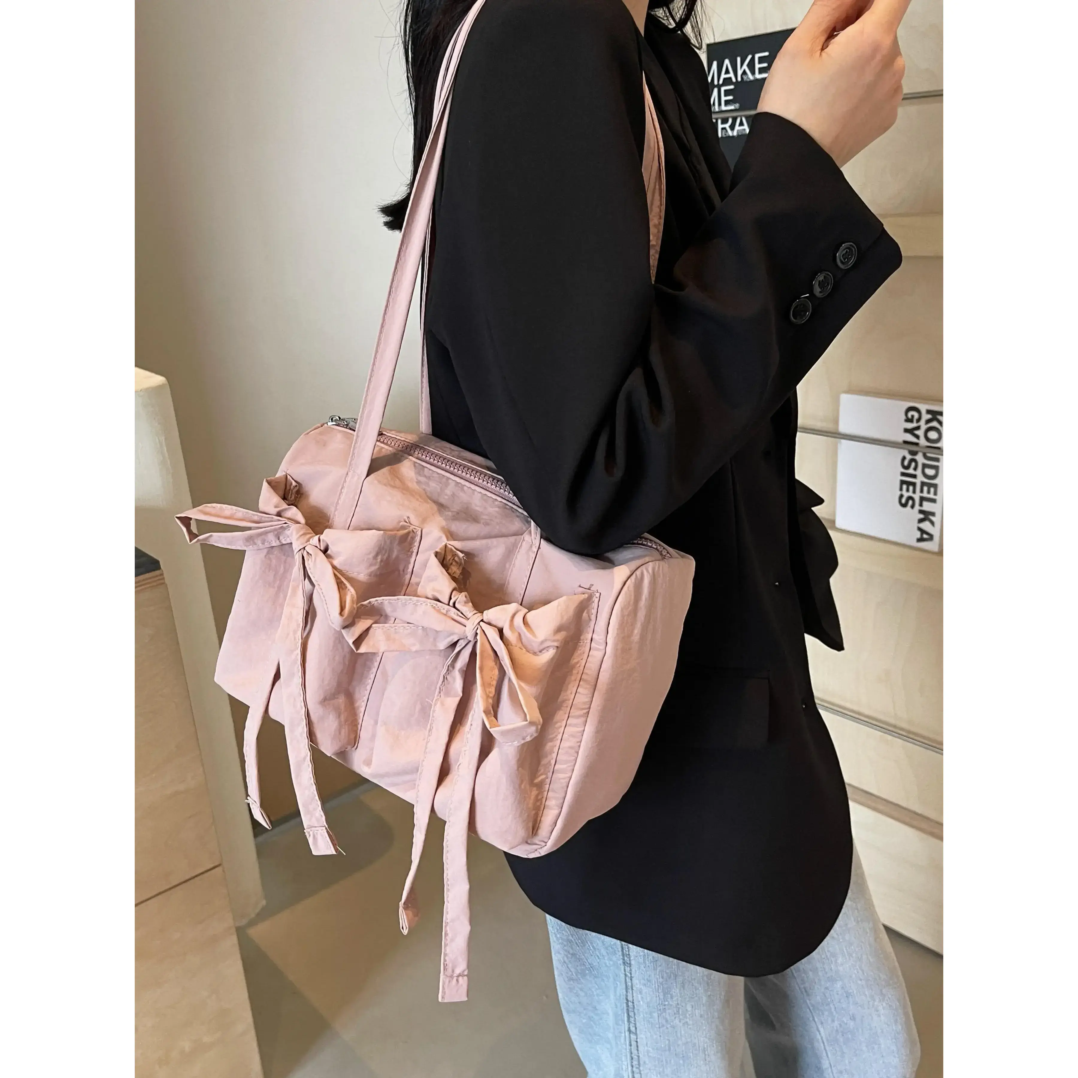5. Women's Solid Color Bow Decor, Large Capacity Shoulder Bag for Daily Used, Casual Trendy Versatile High-quality Daily Commuting Bag, Casual Commuter Bag