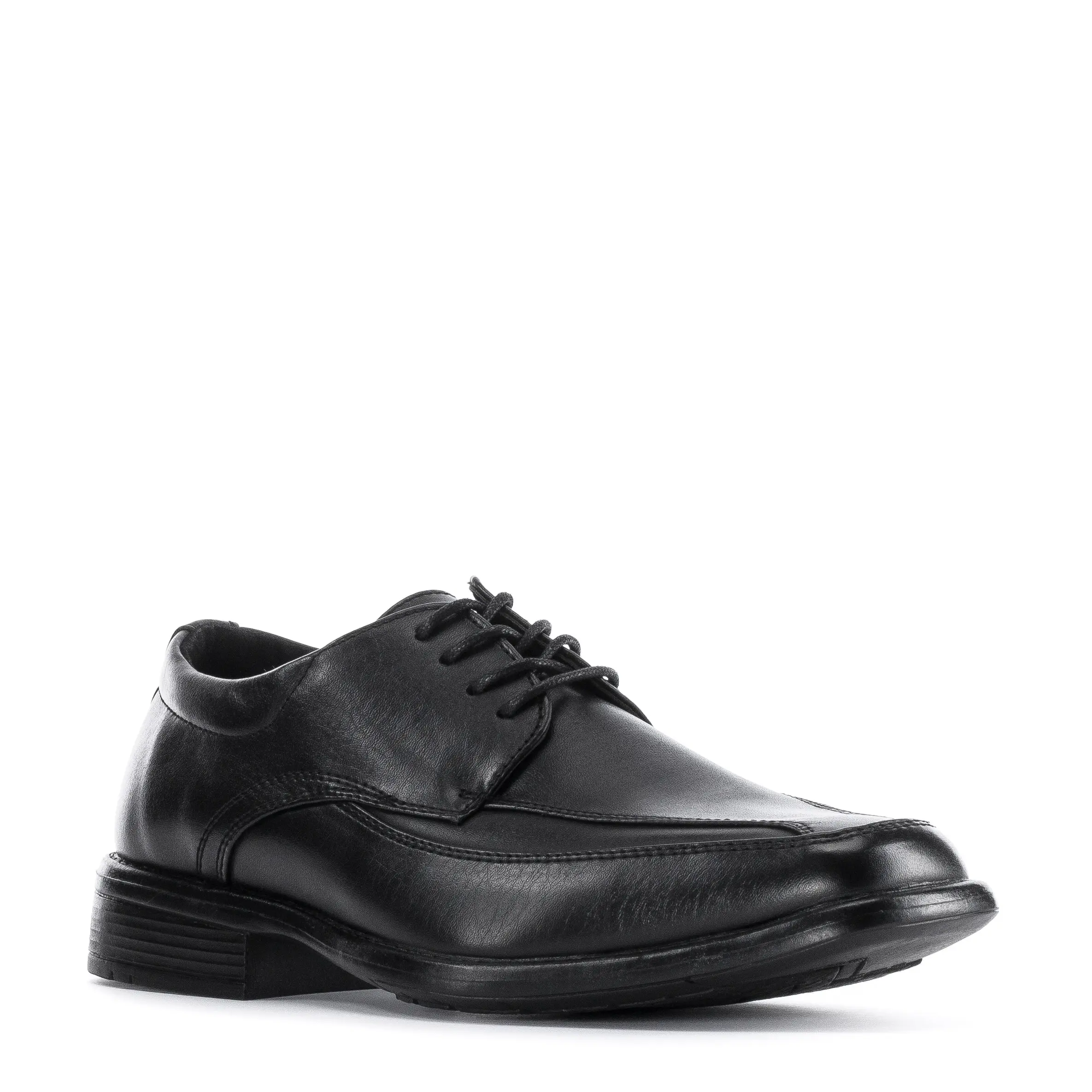 Enhance your style with the Leor Dallas Moc Toe oxford dress shoes. This synthetic leather lace-up boasts a comfortable footbed with a smooth upper, padded collar, and slight heel. Waxed round laces offer a clean look and a customized fit.