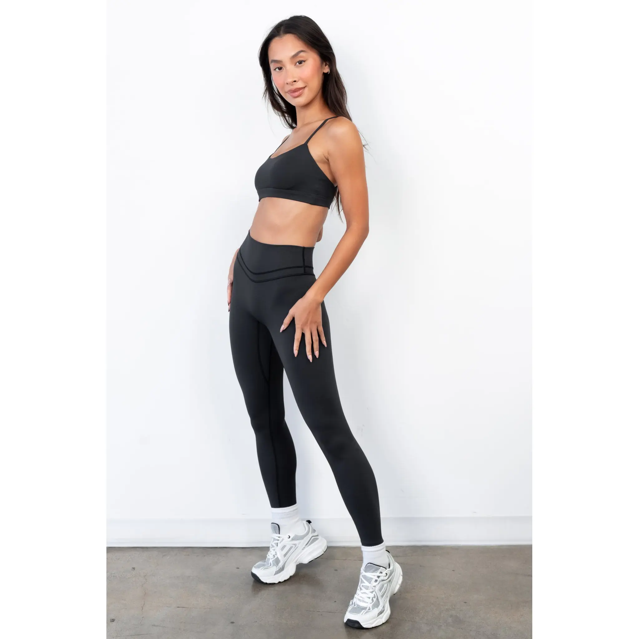 Vitality Pulse is our five-star performance fabric. With medium-high compression, 4-way stretch, and moisture-wicking and antimicrobial properties, the Vitality Pulse Pant is perfect for sweaty, high-impact workouts while still being comfortable and flexible enough for yoga or Pilates. She has a sleek handfeel, ultra-durable construction, and is made with majority recycled materials. And, bonus feature: the double Signature Glute Contour Seam® accentuates the waist and defining the glutes.