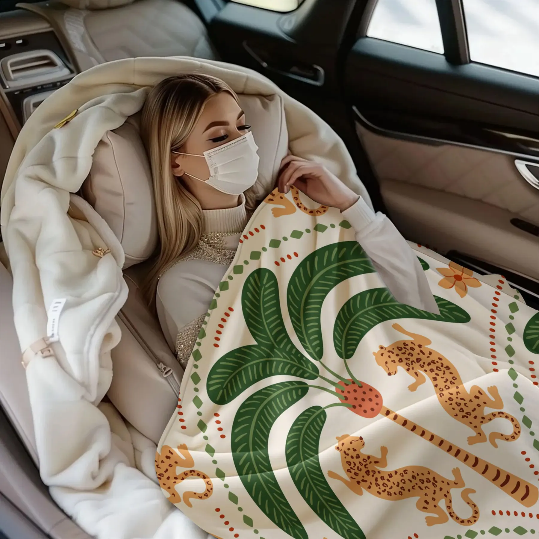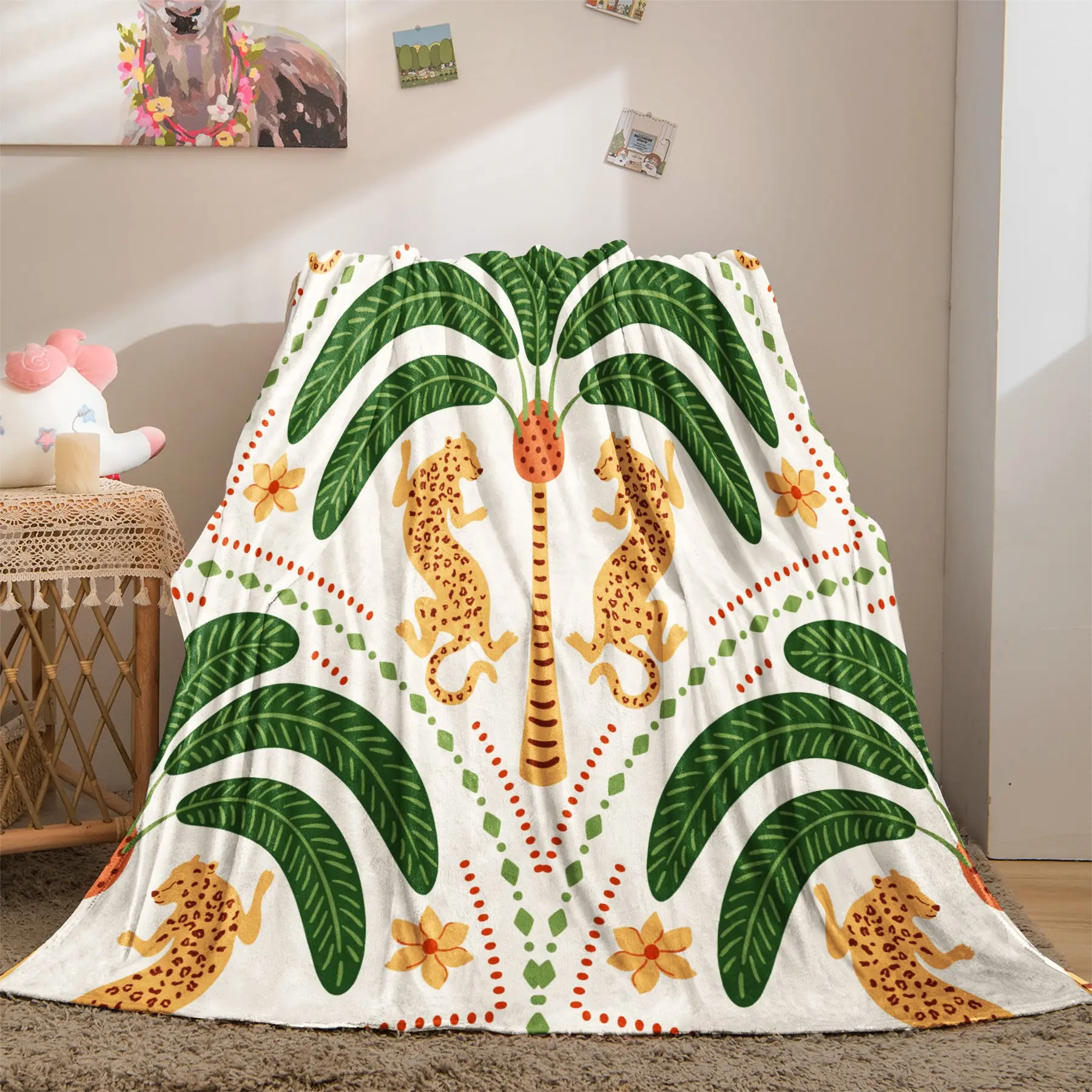 1 Pcs Tropical Cheetah & Palm Blanket, Bohemian Style Flannel Blanket, Warm, Breathable and Shed-Free, Essential for Travel and Picnics, Ideal for Exotic Style Lovers, Unique Bedrooms and Dorm Napping