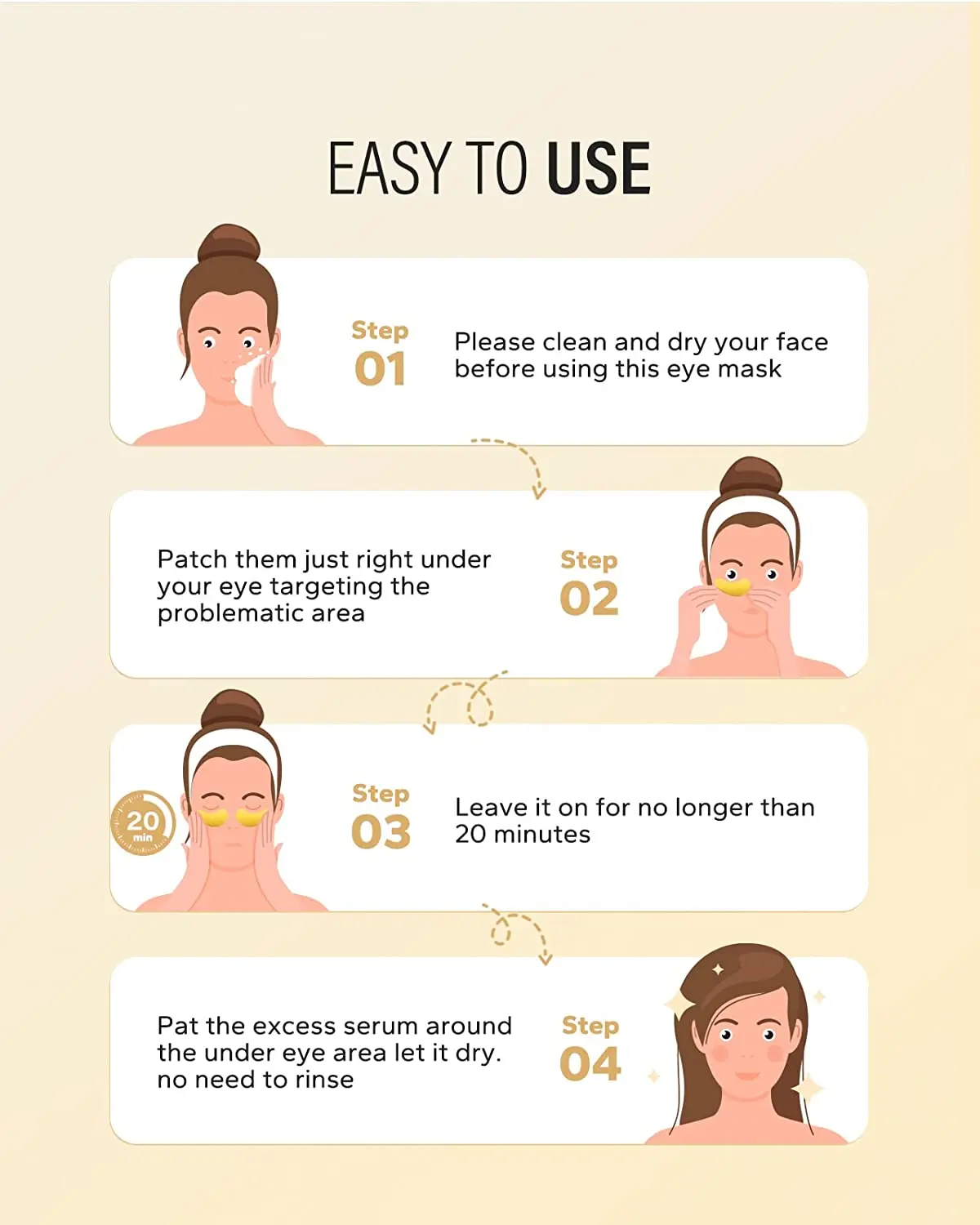 The eye mask ensures a hydrating and soothing experience. It retains moisture for long-lasting hydration, keeping your eyes refreshed.