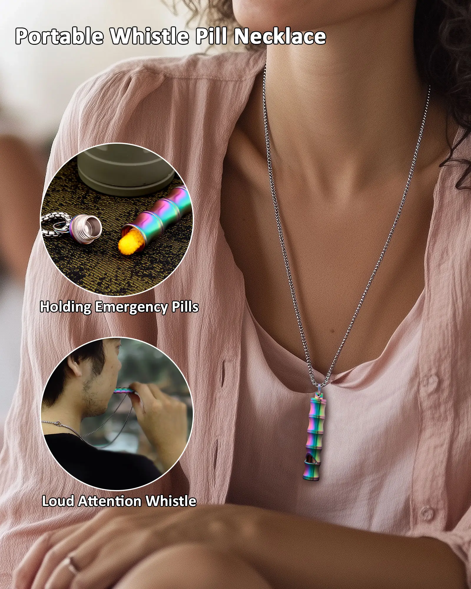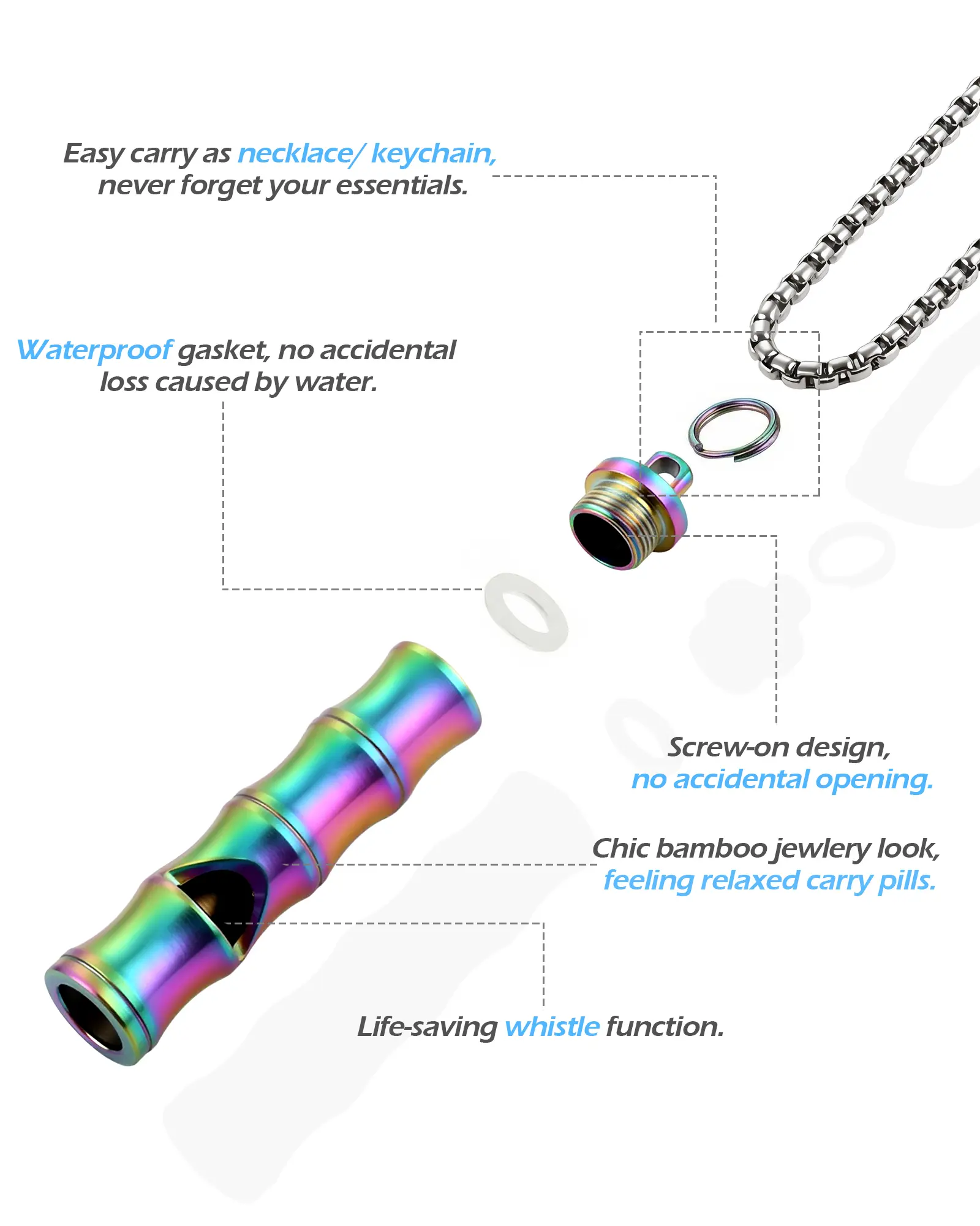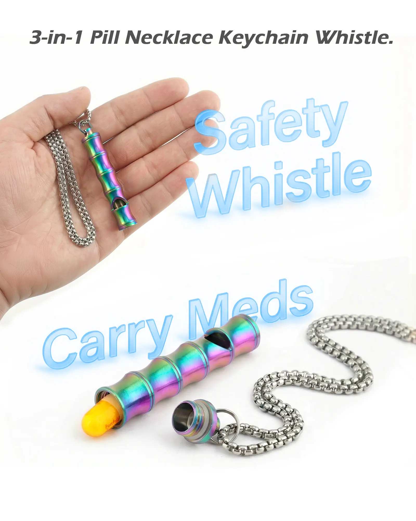 PJYTAC Titanium Pill Holder Necklace Emergency Whistle Mini EDC Pill Container Pendant for Holding Small ThingsPJYTAC Titanium Pill Holder Necklace Emergency Whistle Mini EDC Pill Container Pendant for Holding Small Things