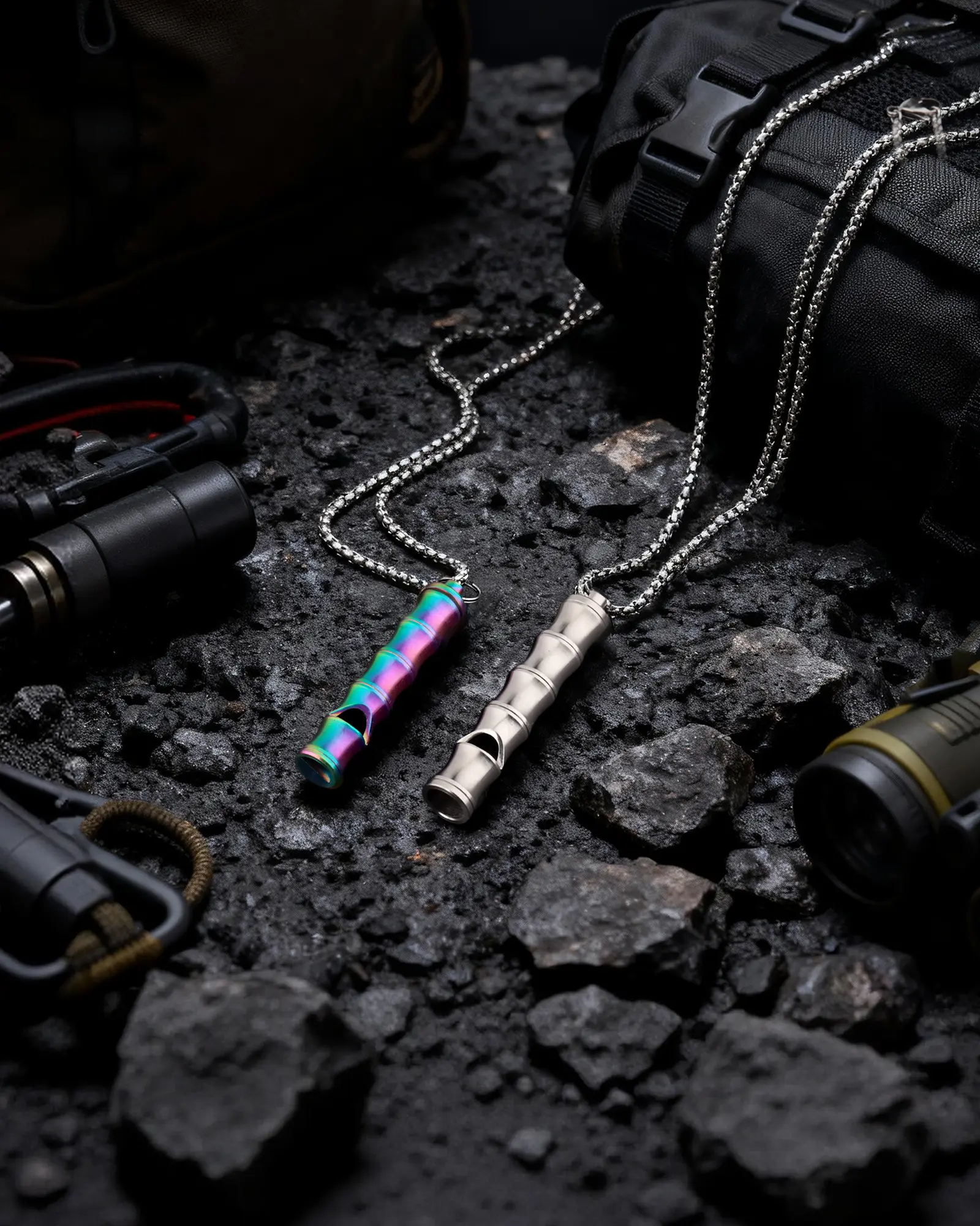 Titanium Container pendant necklace whistle that can hold tiny things.