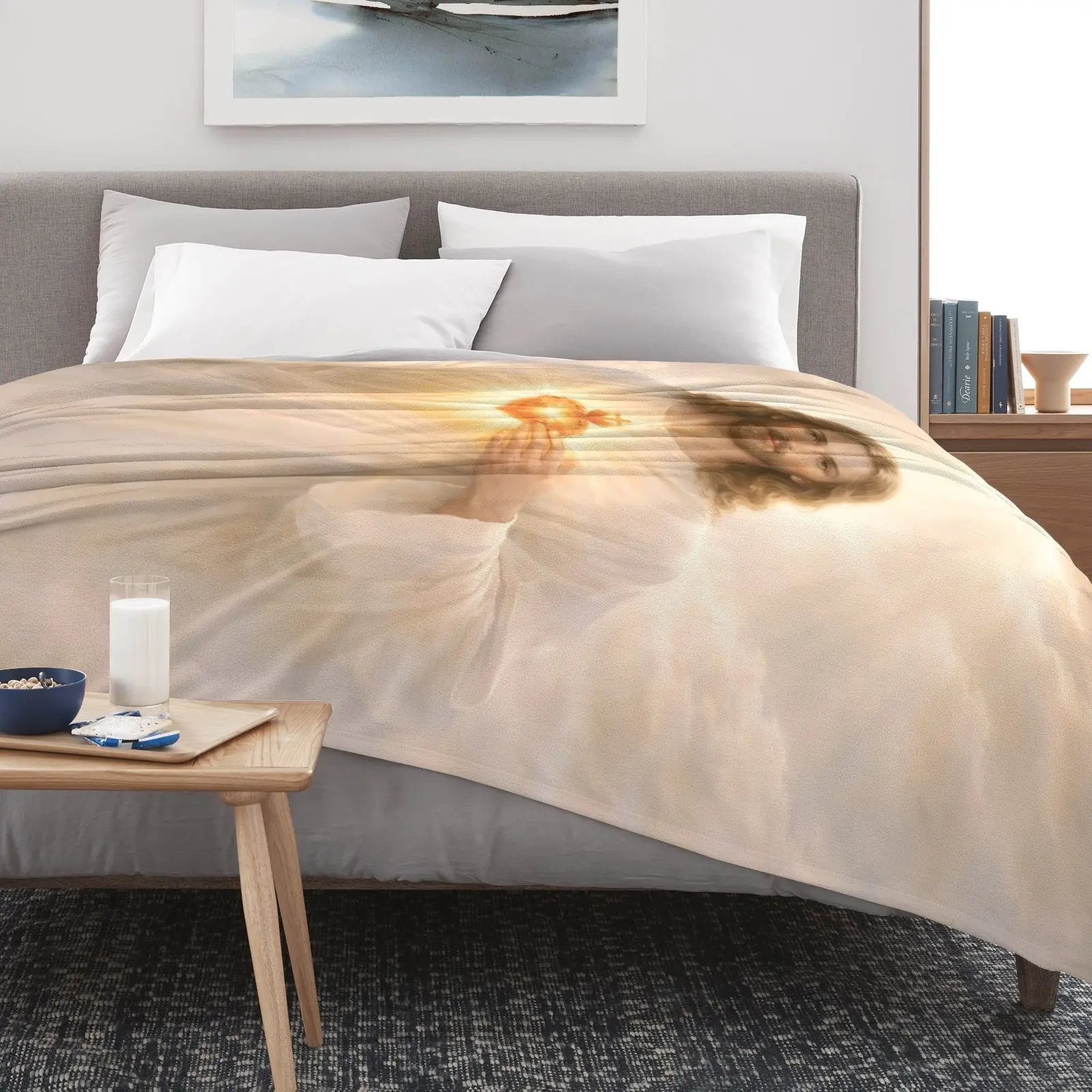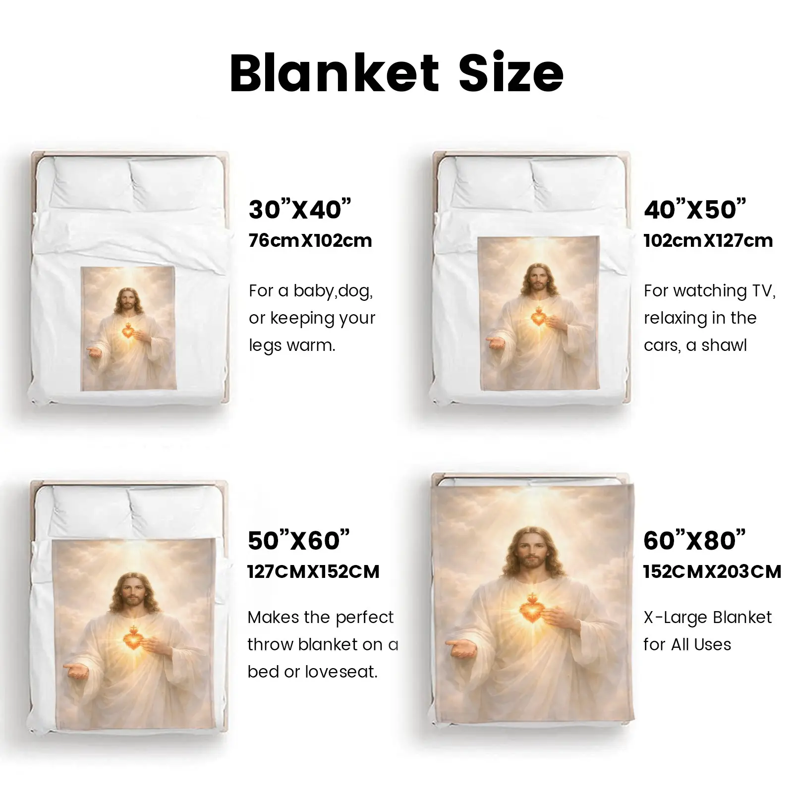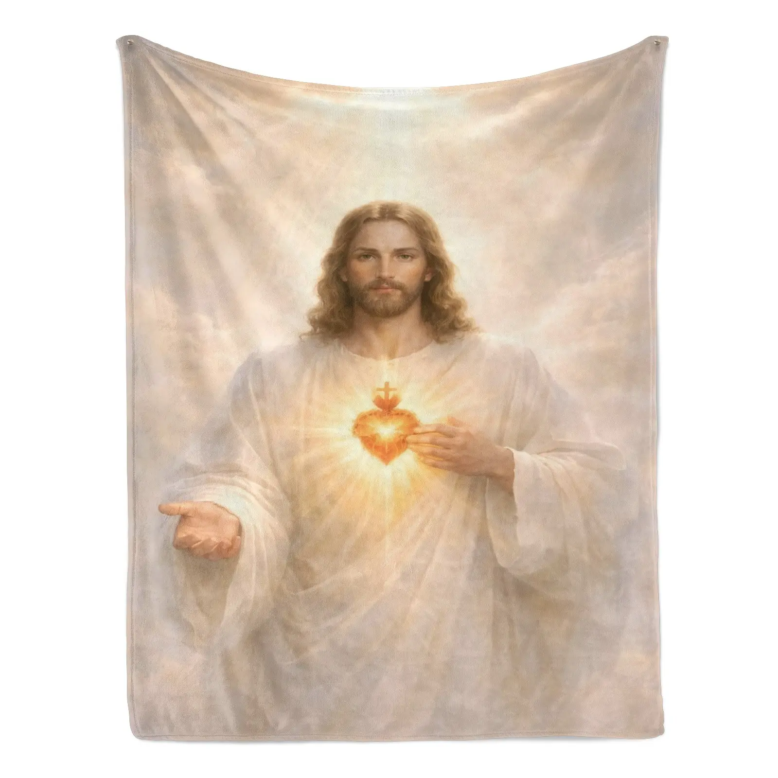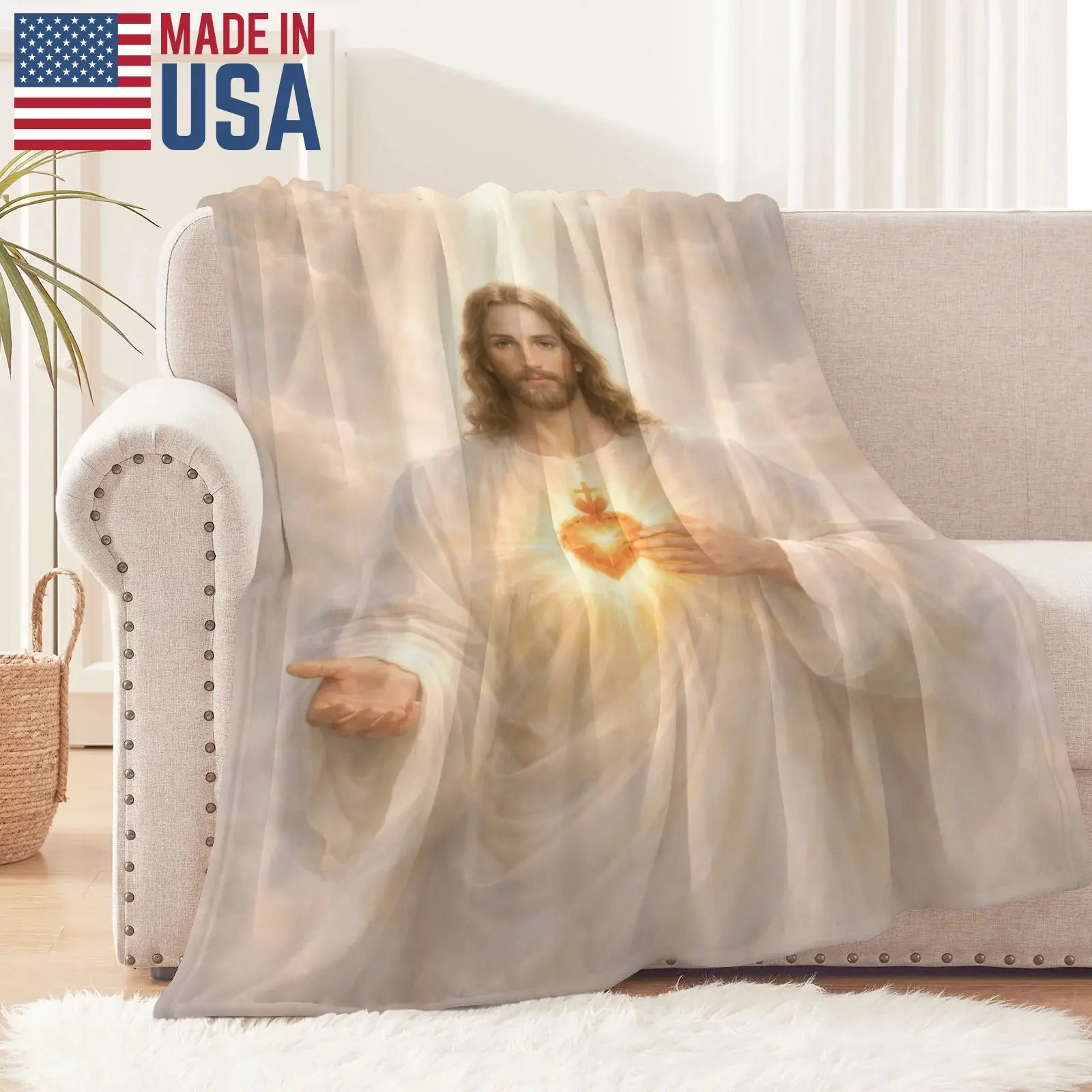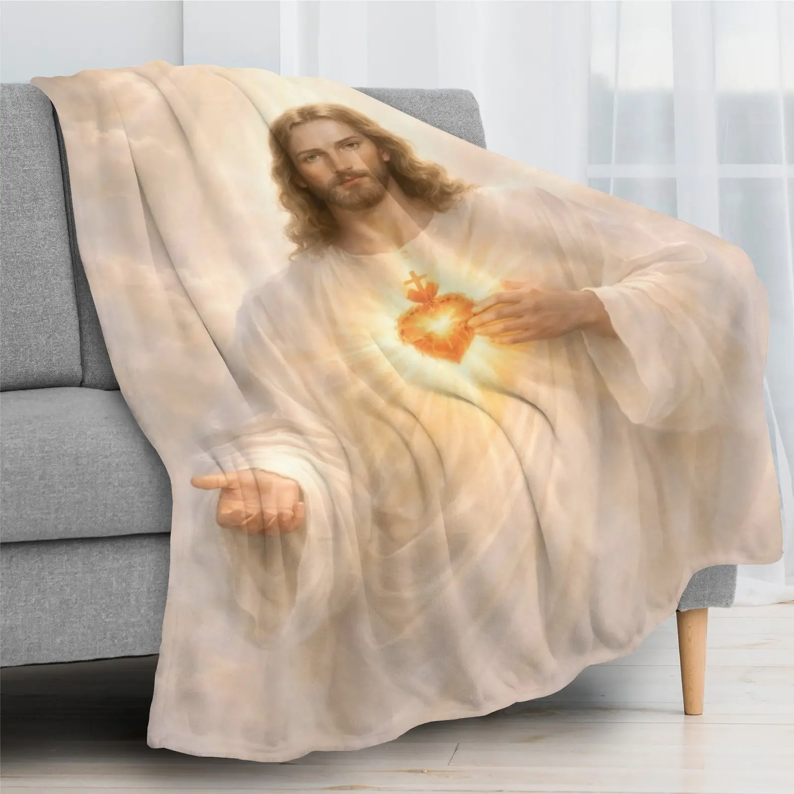 Sacred Heart of Jesus Flannel Blanket Soft Cozy Plush Throw Perfect Christian Devotional Gift Warm Snuggle Blanket for Bedroom Prayer Space Heavenly Divine Light Religious Art Design