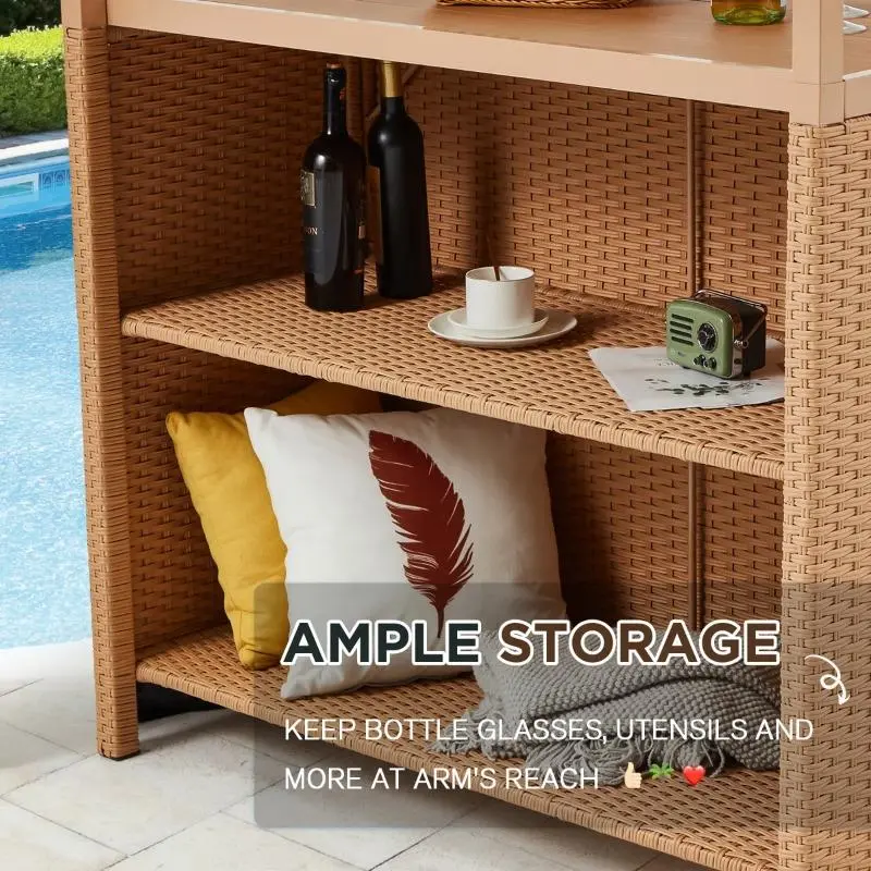 Crafted with a durable plastic wood tabletop, this outdoor bar offers excellent resistance to heat, scratches, and impact. Unlike marble, it won’t easily scratch, and unlike glass, it won’t shatter. The smooth surface is easy to wipe clean, making it ideal for everyday outdoor entertaining.