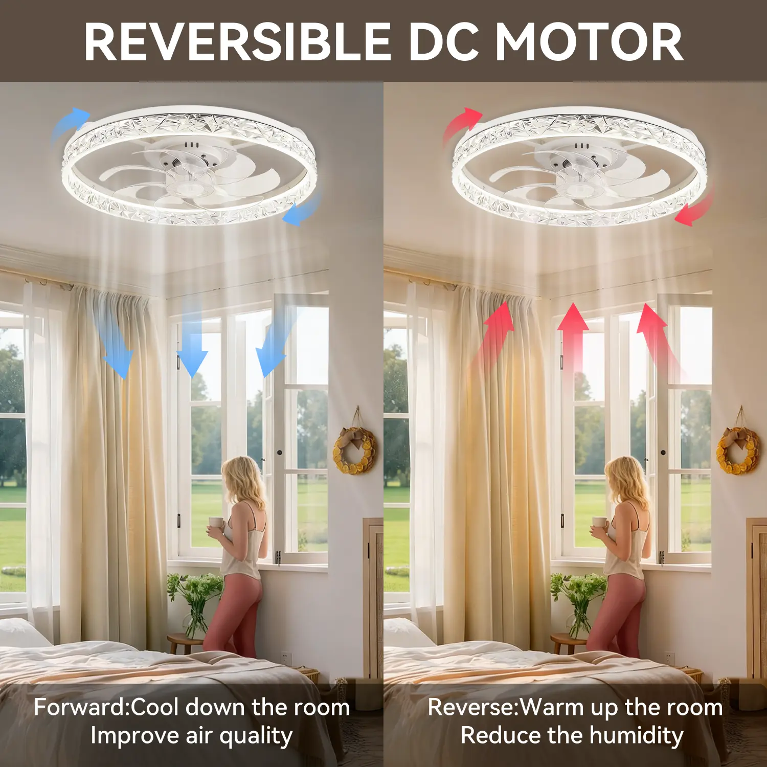 Reversible Brushless Motor:One of the standout features of this fan light is its reversible brushless motor. This innovative design allows the fan to rotate in both forward and reverse directions, giving you maximum control over your indoor environment. In the summer, the forward rotation enhances air circulation, providing a refreshing breeze that keeps you cool and comfortable. When winter rolls around, simply switch the motor to reverse rotation, and it will help distribute warm air more evenly throughout the room, ensuring a cozy and comfortable atmosphere. This dual functionality makes the fan light a year-round solution for maintaining optimal indoor comfort, no matter the season.