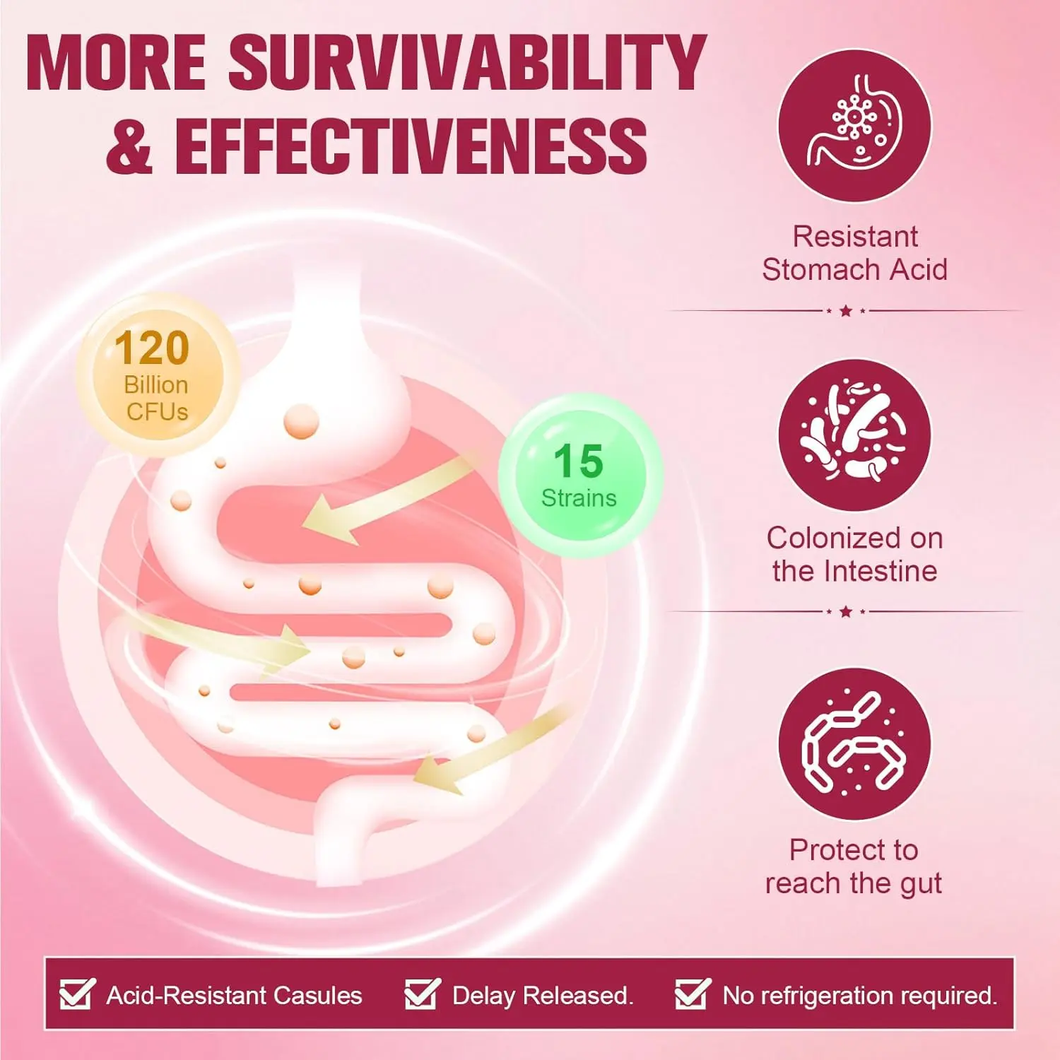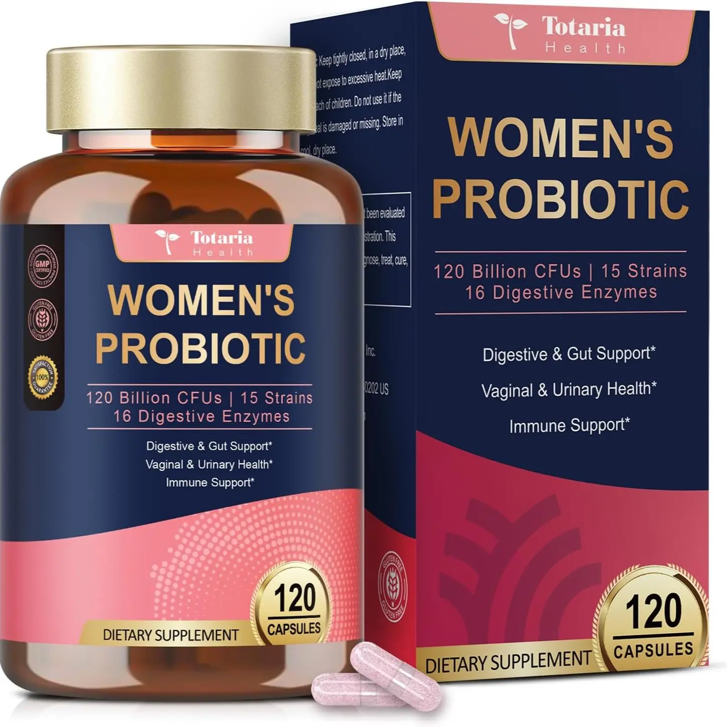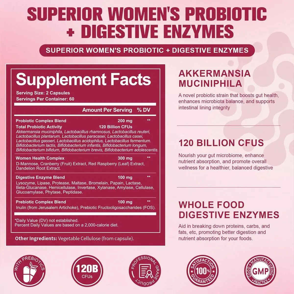 Comprehensive Probiotics for Women: 15 expertly crafted strains with 120 billion CFUs, including Lactobacillus, Bifidobacterium, and Akkermansia, to support gut, vaginal, urinary, and immune health.
