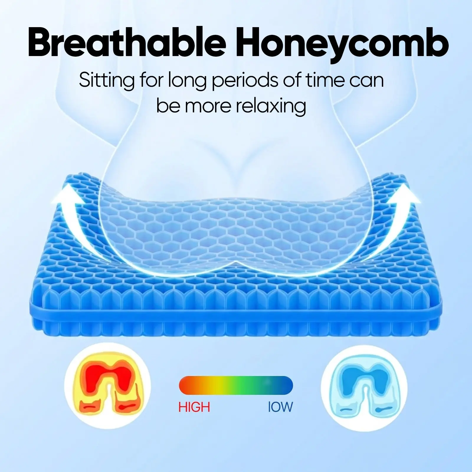 Double-layered honeycomb gel seat cushion is highly elastic, easy to carry, foldable, and detachable. It enhances airflow, keeping the bottom cool, and is suitable for those who sit for long periods in the office or car. It's also an excellent gift