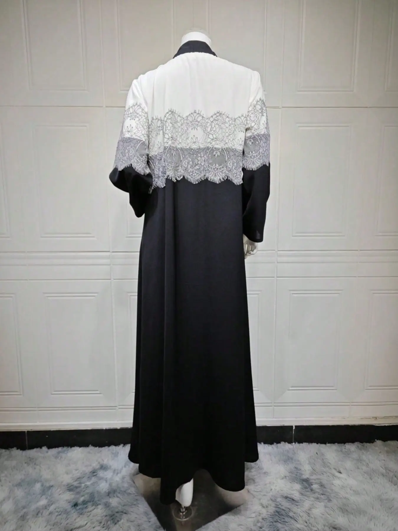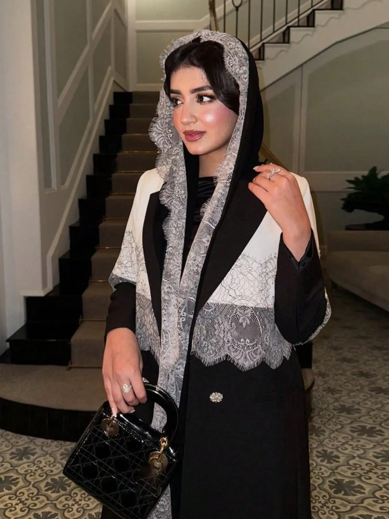 Lace Patchwork Blazer Coat, Elegant Long Cardigan with Scarf, Loose-Fitting Outerwear for All Seasons