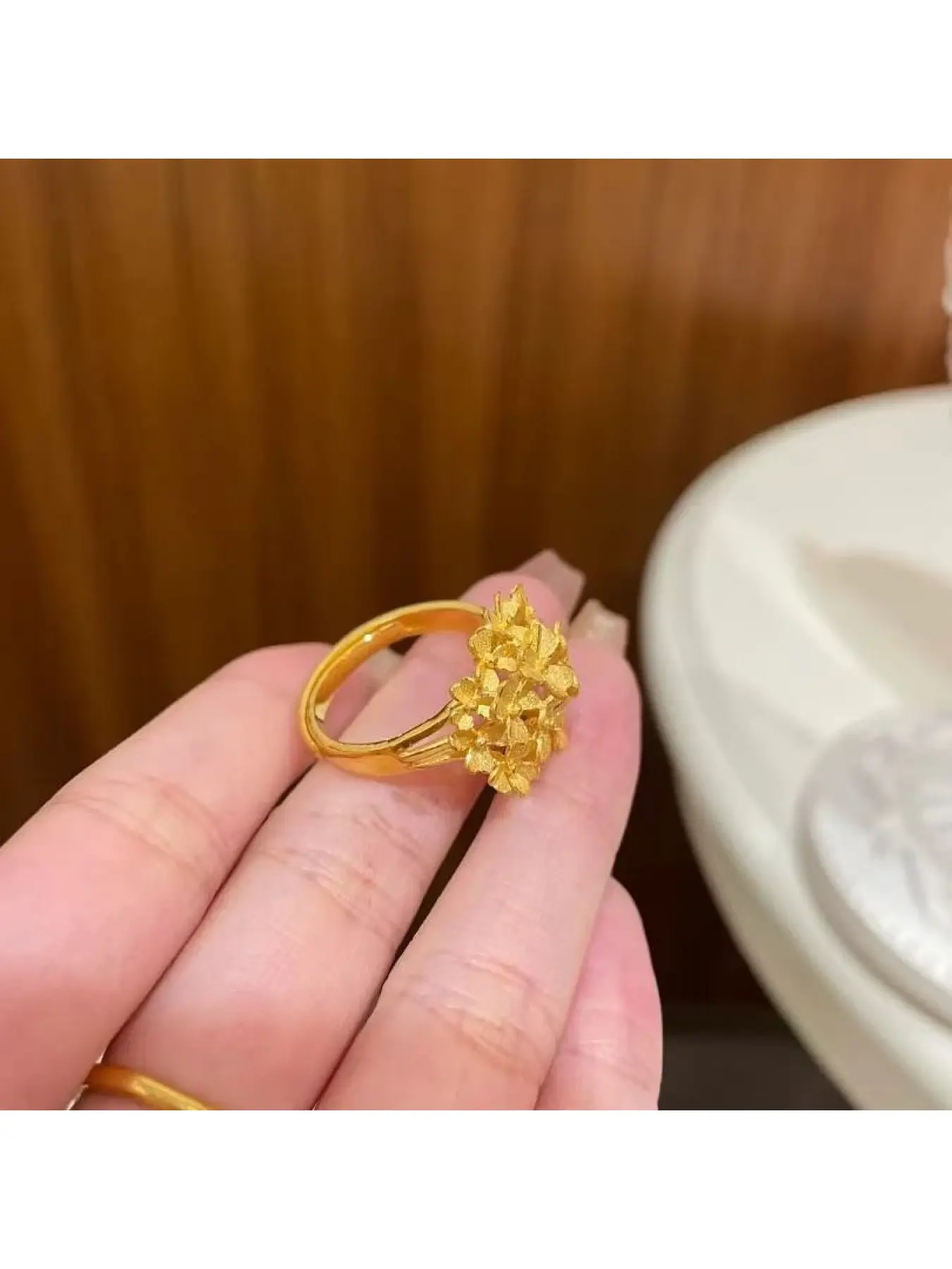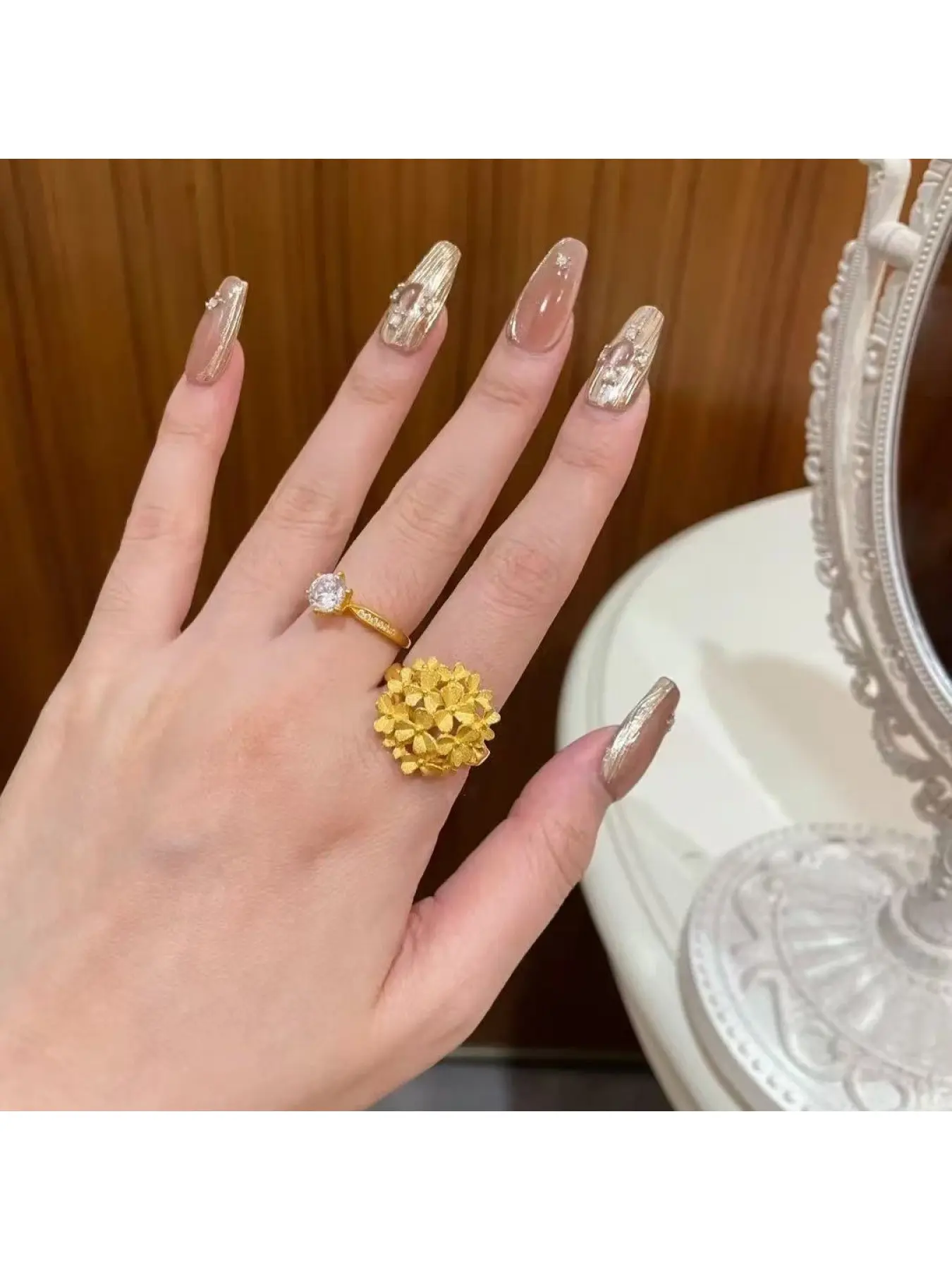 Chinese Retro Gold-Colored Flower Tower Ring for Women, Must-Have for Wedding, Full Bloom Flower Wreath Ring