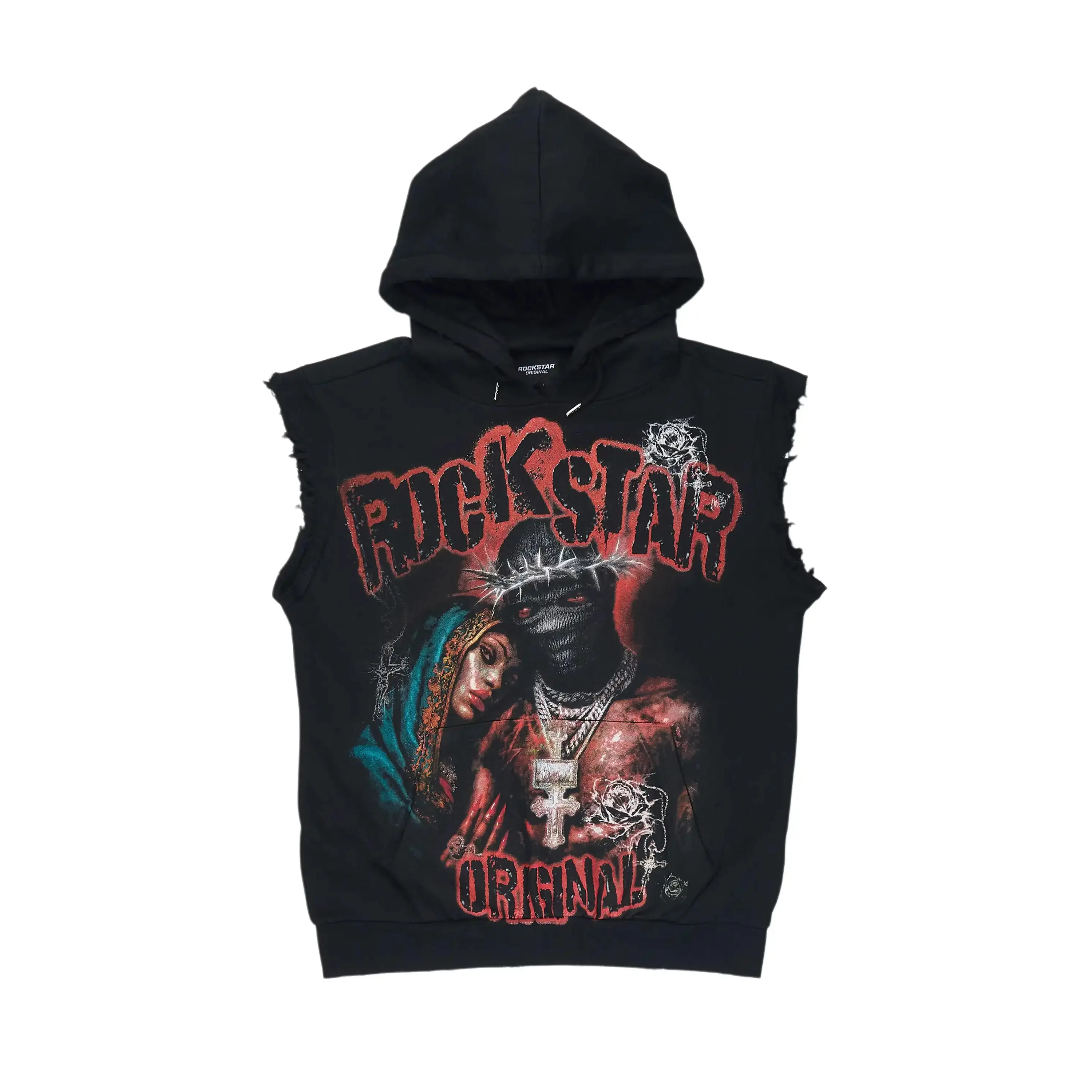 5. Vontae Black/Red Cut Sleeve Hoodie